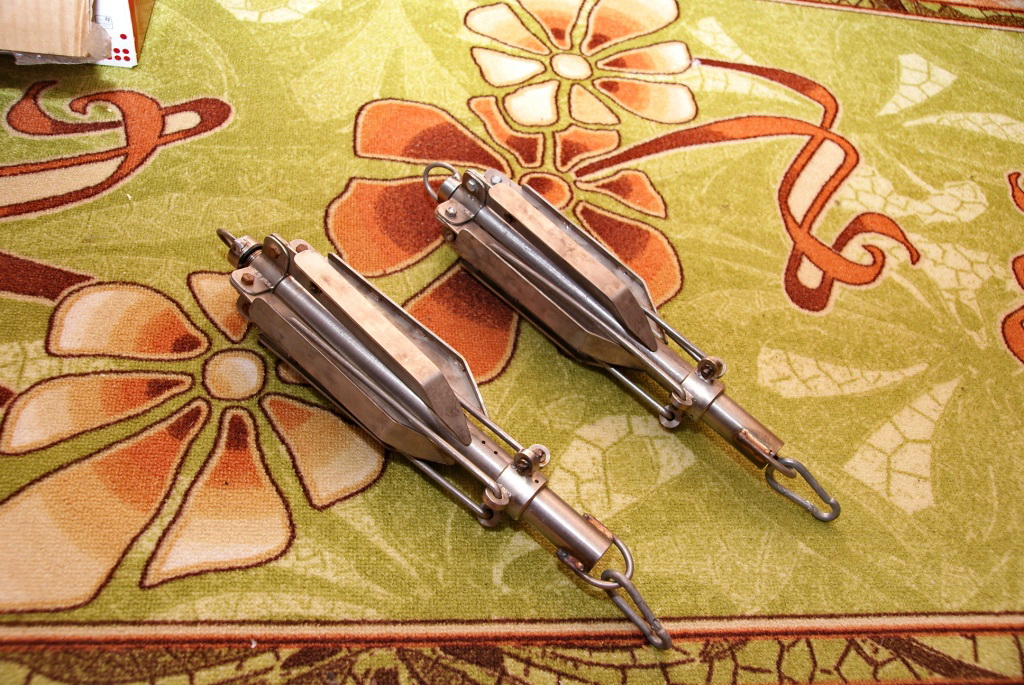 После некоторого времени эксплуатации надувной лодки с разными случайными (обычно одноразовыми , не очень удобными и небезопасными для материала лодки) грузами (кирпичи, попавшиеся под руку железяки и т.д.) решил обзавестись "правильными" "якорями" которые были бы компактными при перевозке (и за спиной в рюкзаке) , в тоже время прилипали бы ко дну, более-менее держали лодку и легко выпутывались бы из водорослей. Добыл свинец из старых аккум. и отлил. Форма блина с разной толщиной позволила добится того, что груз падает нужной стороной вниз, прилипает и тащится при нагрузке по дну, без приподымания передней части, и значит слегка зарывается в него (как скребок). При этом он легко выходит из ила и поднимается на поверхность, а для очистки от налипших водорослей и т.д. достаточно его несколько раз при подъеме провести под лодкой из стороны в сторону. Для отливки груза в 3.5кг. понадобилтся прим. два аккум. 90ам.ч и 70 ам.ч. Я вставлял при отливке резьбовые втулки из нерж. в которые потом вкручиваются рымболты, но варианты крепления неограничены. Хотя с моей точки зрения втулки поставить проще, сверлим в посуде для отливки отв. и прикручиваем с обратной стороны болтом втулку с приваренным поперек кусочком подходящего прутка.