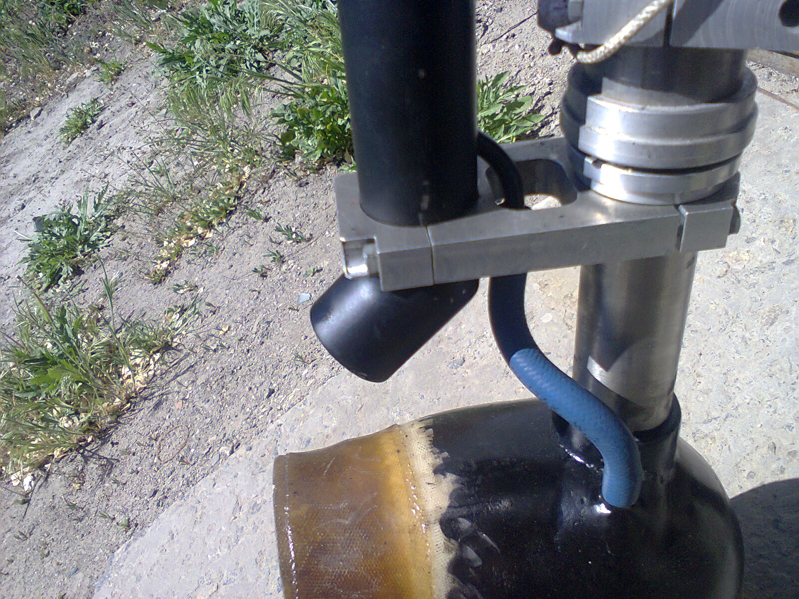 Трубка идет внутри глушителя почти до половины она там хитро изогнута, а напором воду добивает до верха ,проверял на ходу весь глушитель холодный.