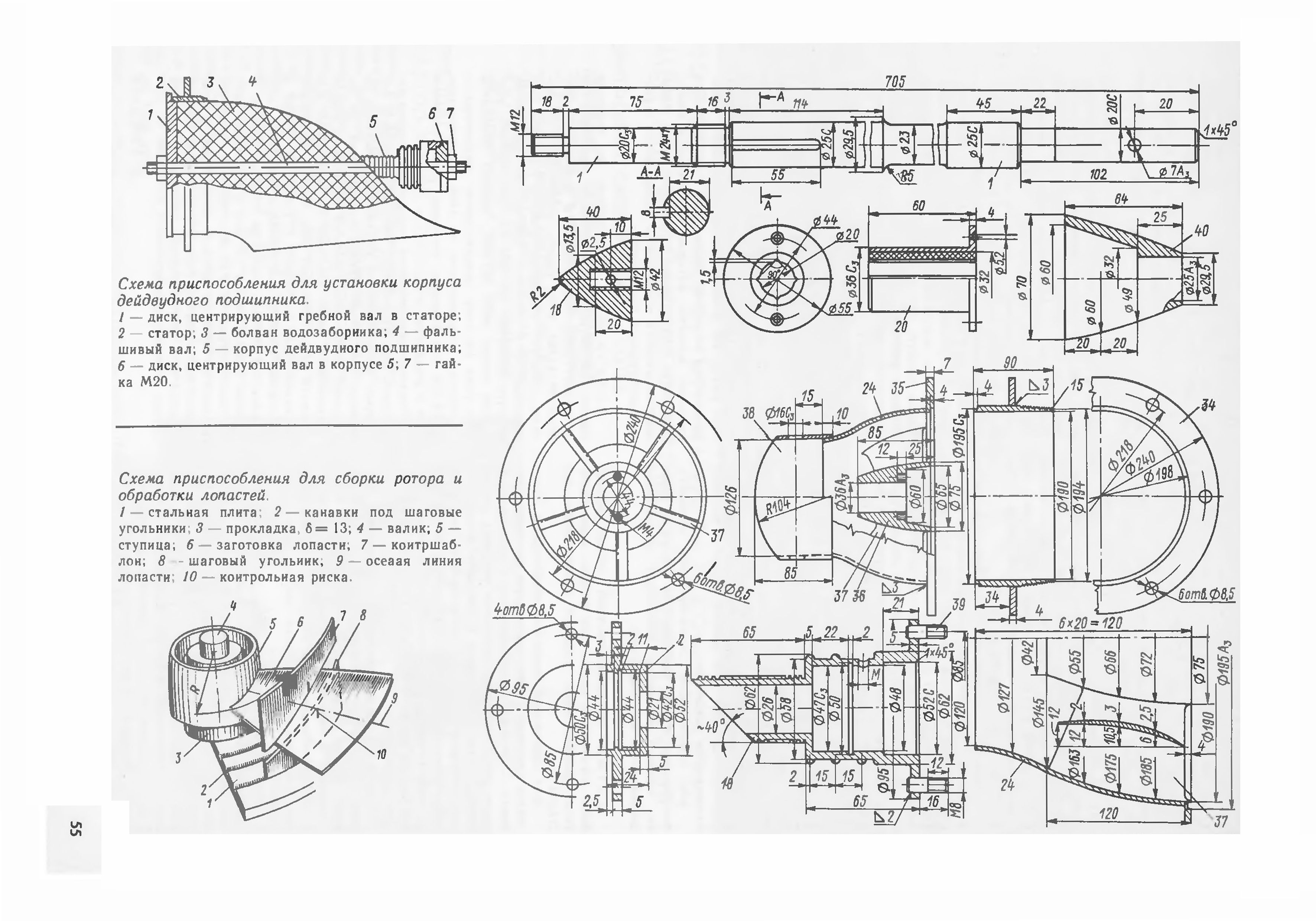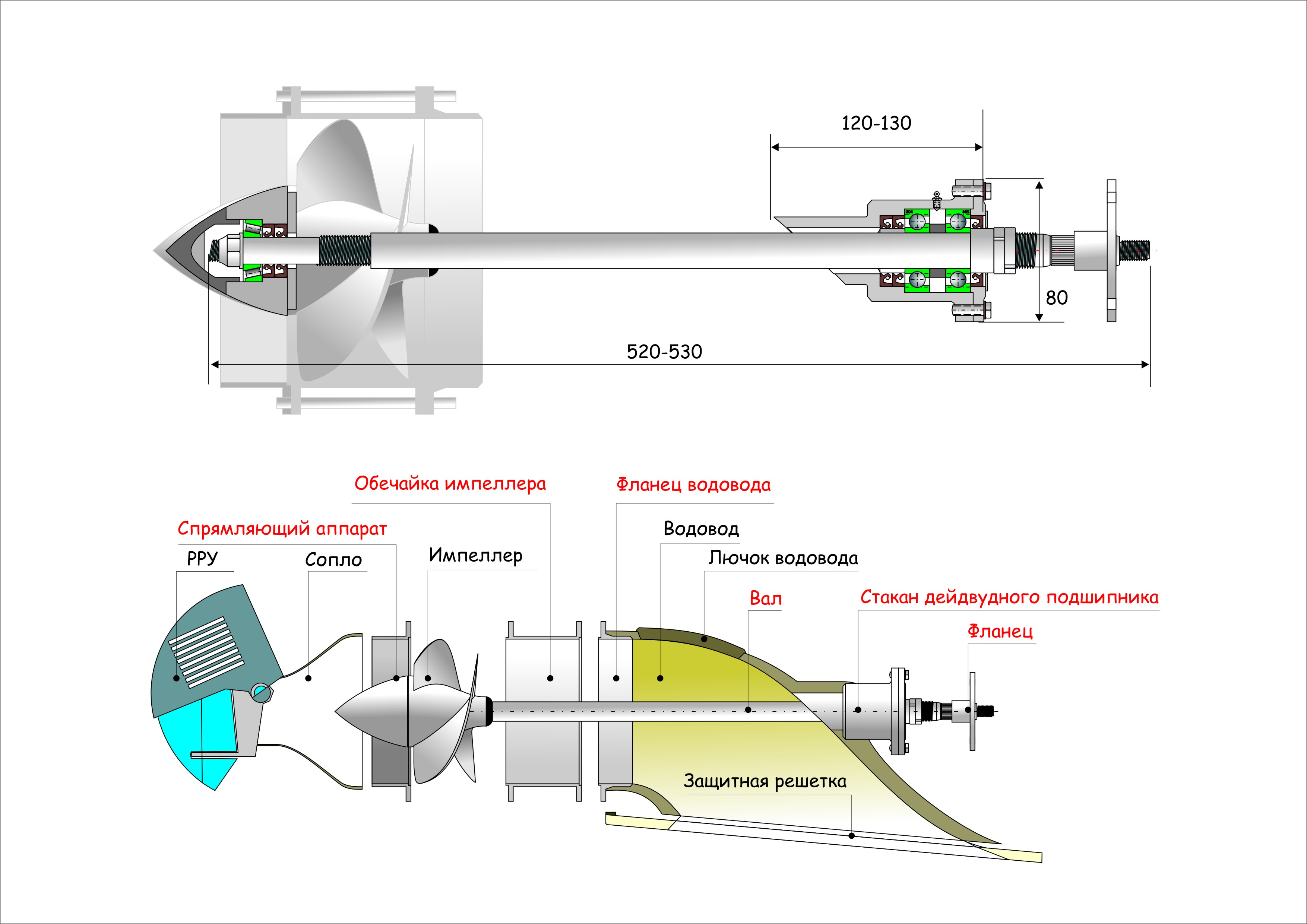Отсюда следует. Сначала вал точится под посадочные места подшипников, и РК (импеллера). Втулки подшипников, и обечайка РК. И затем изготавливается спрямляющий аппарат. Крайние размеры известны, а вот посадочные (прошу прощения, если это не корректное определение) следует делать «по месту». В комплексе: вал – подшипники (с сальниками) – втулки. Это примерно. Самый «нудный» узел – спрямляющий аппарат. Так вот, у меня есть некоторый опыт общения с токарями, в большинстве своем они говорят так; Ты объясни чего тебе надо, а как надо – без тебя разберемся. Только они уже все на пенсиях, без оборудования. Но это не смертельно – выходы всегда есть…