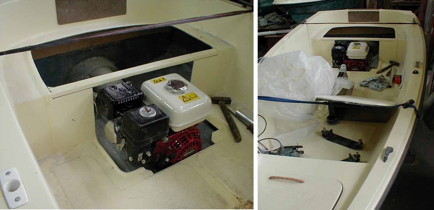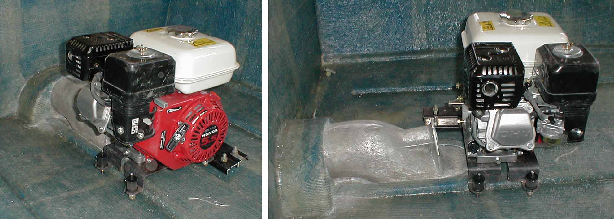 Алексей, здравствуйте! Все порадовало. Имею ввиду Ваши лодки. Поделюсь мыслью. Я пробовал вот такую конструкцию (фото 1-4). Диаметр ротора 125 мм, мотор 5,5 л.с., лодка – 3.1 м. Живучая конструкция. Дело в том, что я не могу убедить себя, что подвесной водомет – это хорошо. Ну, не получается в моей голове. Либо водомет-стационар, даже малой мощности – это понимаю, либо подвесник, но тогда с винтом, тоже мощность на любителя. Водомет-подвесник – ? Не догнал еще. Из того, что я видел, сделал такой вывод – это объединение отрицательных качеств обоих движителей. При небольшой мощности, плюс прохождения мелководья весьма призрачный. Я об этом много думал и более готов к мысли, что пусть мотор даже съемный будет (для транспортировки, например), но труба водомета должна быть «взрослой» (рис. 5) – как-то так, возможно. Правда, есть три проблемы, (1) с занимаемым местом внутри лодки, (2) что если лодка ПВХ, и (3) решить вопрос с выхлопом. Но ПВХ для себя я не рассматриваю. Выхлоп – не велика проблема – зато, нет проблемы с редуктором. А по компоновке – двигатели от 2-х до 10-ти сил, достаточно малогабаритные. Мотор снять – четыре болта в принципе. На 2 минуты дольше, чем подвесник установить. Хоть лодку можно переворачивать, уже плюс.
