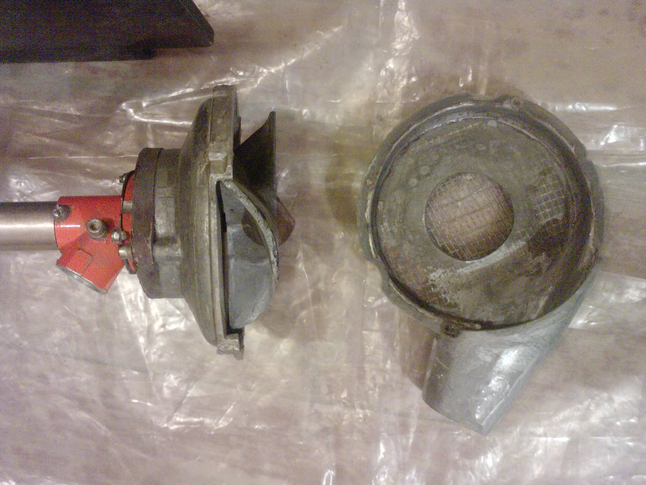 Слабовато- не то слово, полное разочарование.Сначала лодка еле плыла. Пришлось на сопло одеть пластиковую бутылку, увеличилась скорость , но пропало тягло. На больших промежутках лодка разгоняется,а при развороте на 180гр ещё метра 3 плывет по инерции и лишь потом набирает ход.Это уже второй вариант и его даже сырым не назовешь, уж очень хотелось испытать , осень кончалась. Вместо крыльчатки был использован винт из В.1 , немного модифицирован . Использование винта в улитке - полный бред т.к. создается давление в камере,которое потом успешно им преодолевается. Улитка была отлита из эпоксидки на скорую руку и очень каряво, что в итоге привело к большим потерям на трении и турбулентности .(неровности в сопле, т.е. отклонение от вектора выхлопа ( ямки, бугорки , изгиб плоскости) на 7мм в любую сторону , приводят к возникновению завихрений,сильно понижая КПД это по науке).Считаю общее направление мысли правильное, осталось изготовить забористую крыльчатку на 6-8 лопастей с п о д п о р н ы м и пластинами сверху и снизу ( получится диффузор), для устранения рассеивания потока воды и снижения сопротивления( трения) крыльчатки в камере, и можно ждать лета. Если все сделать правильно то КПД такого агрегата 70% ,если мне не изменяет память.Зная рабочий объем крыльчатки, КПД ,обороты и мощность можно загадать нужную скорость( в размерах разумного) и ограниченную мощностью двигателя и интуитивно просчитать сечение сопла. К стати на HONDAвских водометных приставках использован тот же принцип, к сожалению они не светят внутренности. И на всякий случай выкладываю фотки мотора , может кого и заинтересуют.