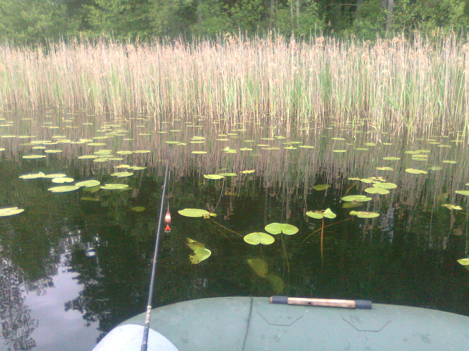 . Нашли мы эту сонную щуку - она преспокойно дрыхла в зарослях тростника и кувшинок . Спровоцировать её на поклёвку можно было точно положив приманку ( с лёгким всплеском ) ей на нос и желательно в тот момент кода она зевает . Если все эти условия совпадали , то поклевка следовала на первом же обороте катушки . Вероятно щука не питалась а просто устраняла раздражитель , мешающий её отдыху . И тип приманки абсолютно не имел никакого значения - главное точно доставить её в нужную точку . Все щуки как близнецы - 1,2 кг.