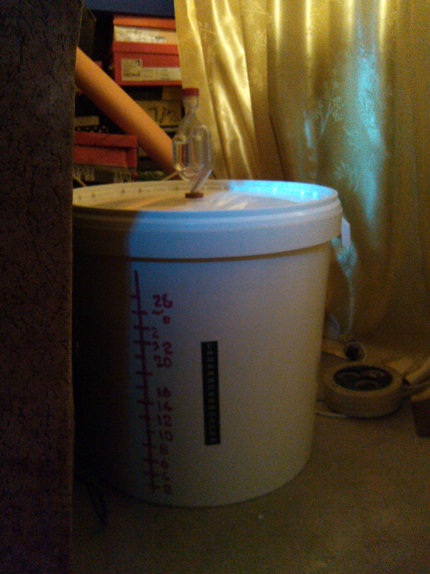 - закрываем герметичной крышкой ведро, ставим гидро-затвор (не забваем в него кипячёную водичку залить :-): ), записываем показание градусника (вы же не забыли прилепить его к бочке? :mi_ga_et: ) в вашу, уже заведённую, тетрадь!