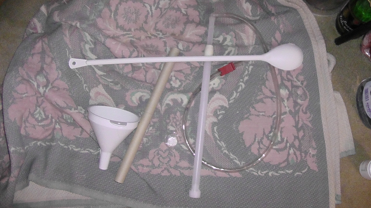 О последнем хочу поговорить подробнее: Т.к. квартира маленькая (двушка, хрущёвка), сильно не разгонишься .- Купил мини-набор: 30-ти-литровое пластмассовое ведро, длинную ложку, гидро-затвор, шланг для переливания пыва по бутылкам, градусник для измерения плотности и кучу хлорных таблеток для обеззараживания всего, участвующего в процессе!- меньше 2000 "деревянных" обошлось :-):