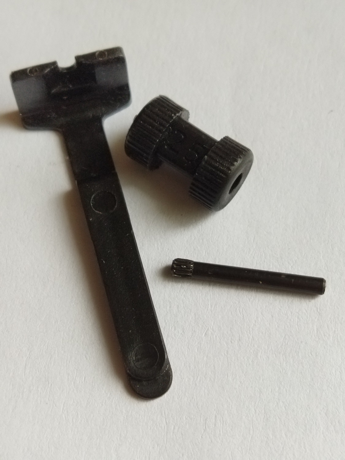 Всем Привет! Пришел мне, заказанный с неимоверными усилиями, ЗИПовский комплект прицельной планки и установочного барабанчика на АПС. Была "мечта" поставить на Gletcher APS, вместо пластика "родное" железо. НО....... прицельная планка АПСа немного отличается по геометрии от Gletcherовской. Но установочный барабанчик встает на свое место без проблем. У него чуть толще диаметр оси, но это не проблема.