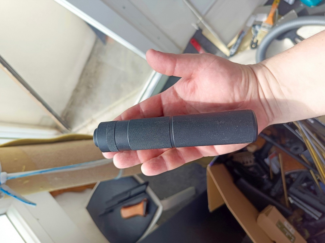 Втулку закрепил по месту в "банке" на цианокрилат с бронзовой пылью мелкой и вот теперь весьма толково садился "ПБС" на стволе. Внутренний мир "банки" раскрывать не буду, скажу одно-там всё просто,немудрёно через чур но весьма эффективно работает. Принцип примерно как в ВСС-представьте его надырявленный стволик и шайбы в самой трубе ПБС. Для переноски изделия в купленном кофре "баночку" придётся откручивать-с ДТК без проблем вмещается как показал вам выше,с "ПБС" увы не выйдет. Ну не проблема-есть этакий чехольчик от оптики на замочке-туда и можно вложить снятую "банку" и положить либо в боковой карман,либо внутрь кофра. Обратный вариант с ДТК+переходник, если они сняты-ложу в боковой карман и всегда под рукой,не потеряются. Надумал снять "ПБС"-пожалуйста. Убери его в кофр,накрути ДТК с переходником. Хотя..... Можно исключить переходник вовсе-если надумаю, то выточу такую же втулочку и в ДТК. Тогда нужда в переходнике отпадёт совсем. В итоге теперь мой "пистолет-пулемёт" заимел гордое имя собственное-"ВАРЯГ".