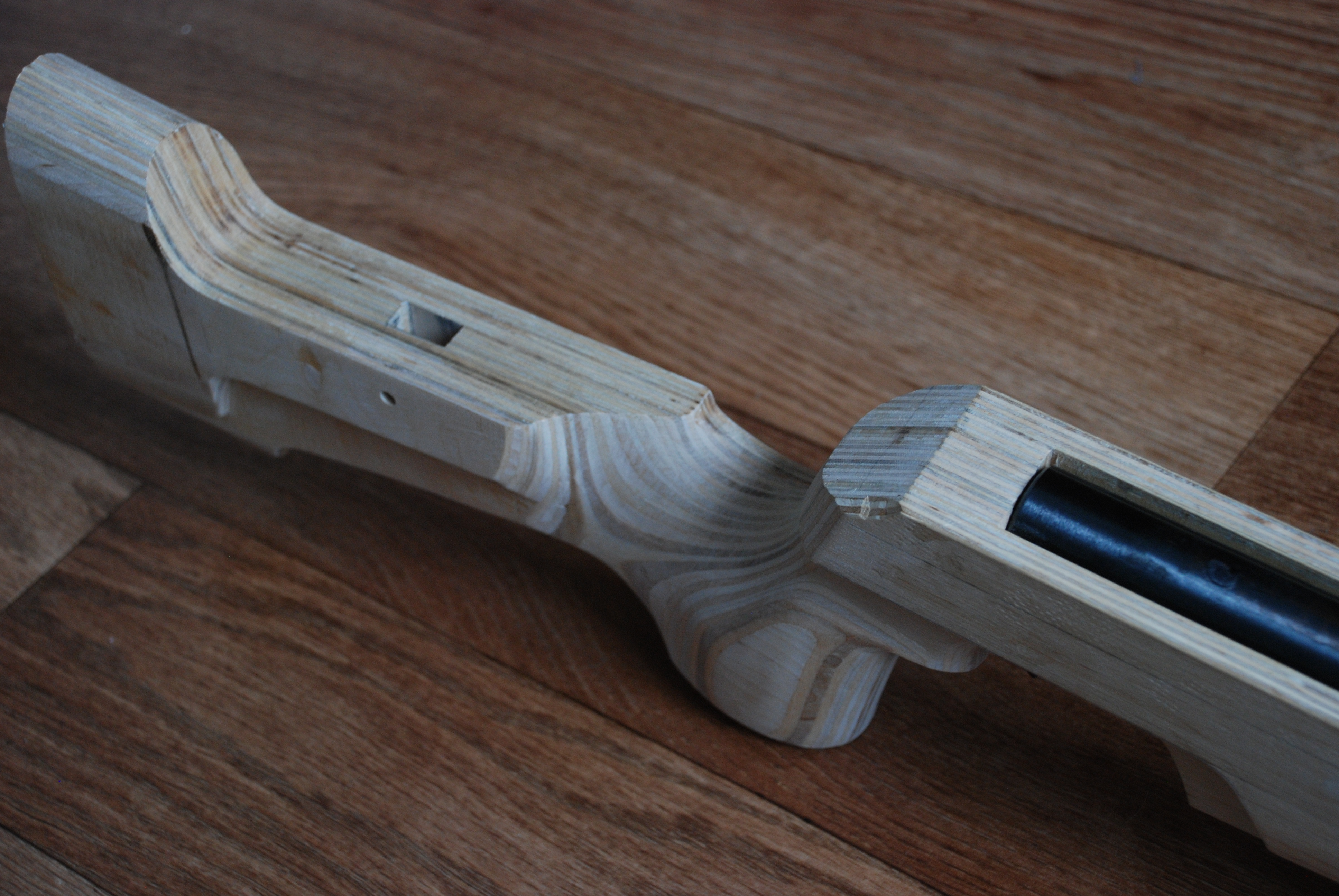 из-за фиговой фанеры пришлось немного отойти от задуманного дизайна, в основном это коснулось части приклада