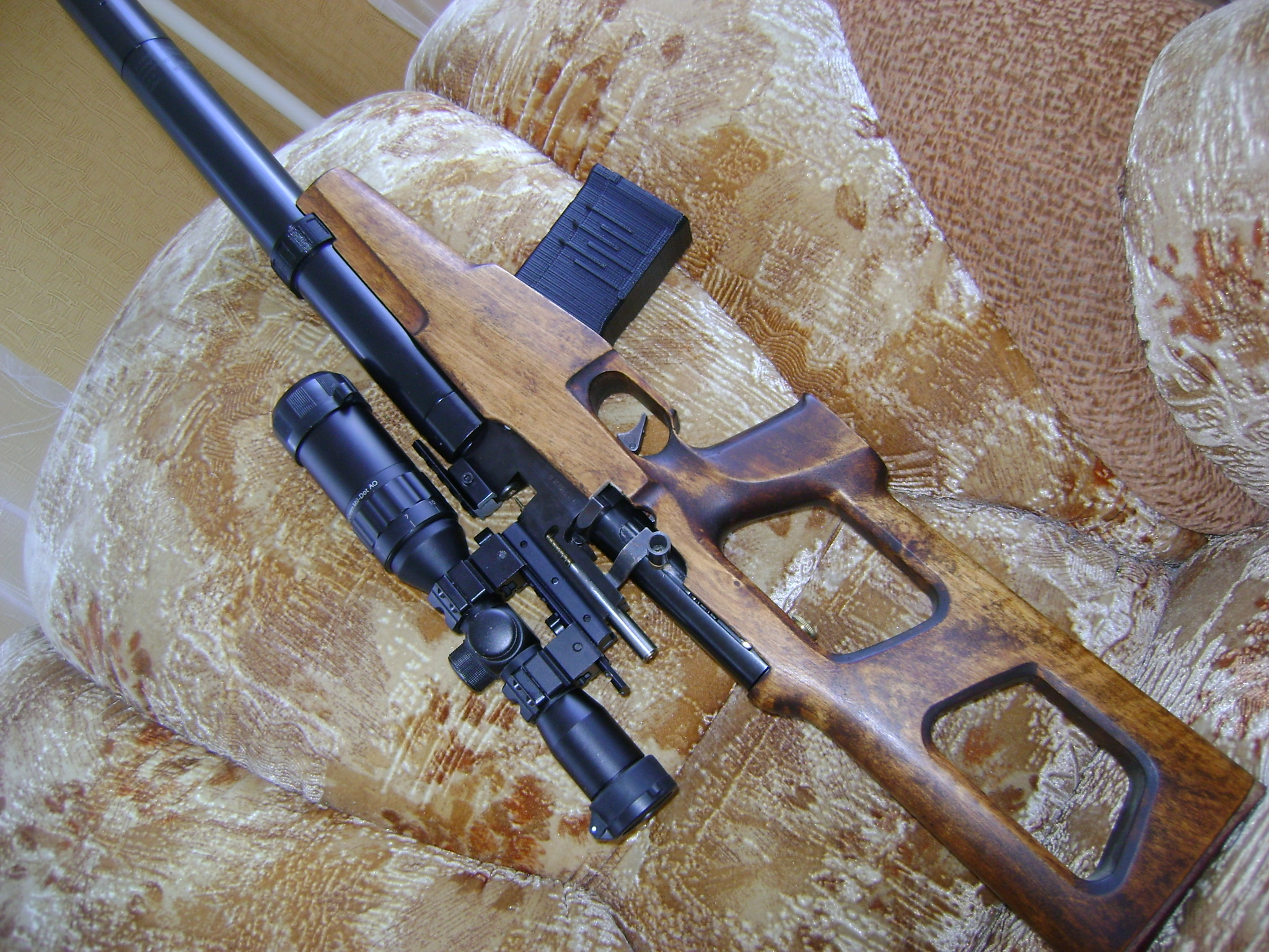 Pnevmanat писал(а):Винторез почти как оригинал, только коробка выдает в нем пневматику, и прицел не псо. Только не пойму я где там резик располагается?