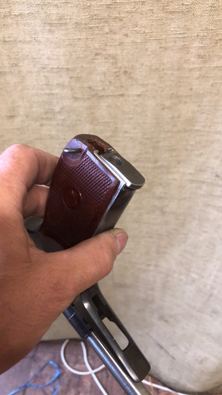 А перемычку для задвижки боевой пружины не наварил? Спусковая скоба ему не подходит.