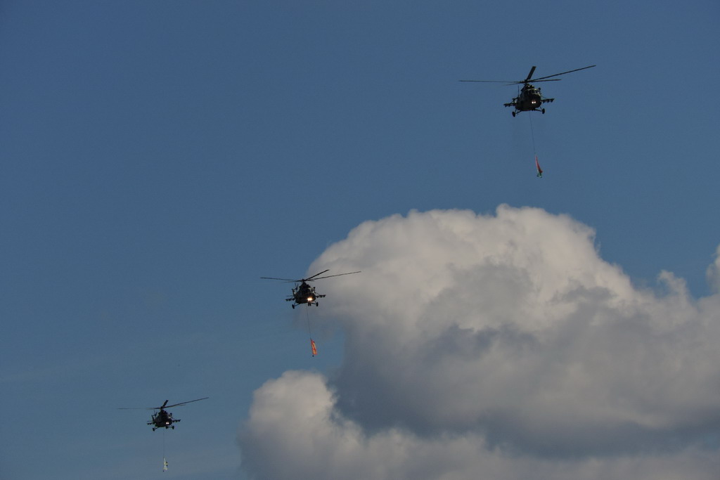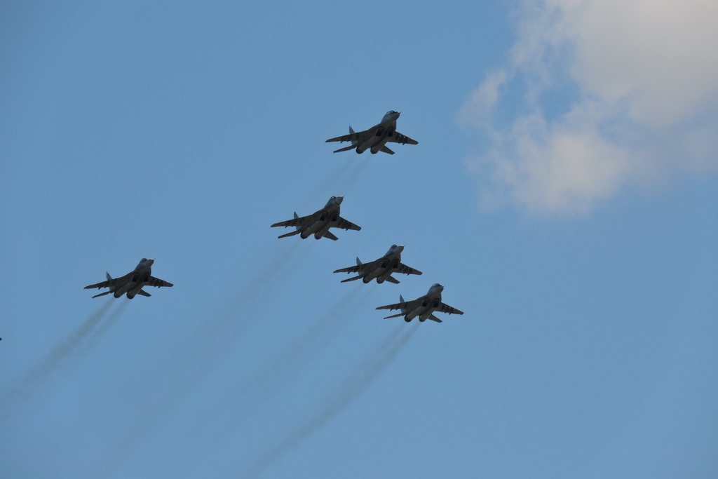 Ну и самая долгожданная и зрелищная часть - воздушный парад :co_ol: . Из того что я не видел - ЯК130 летели и Бомбардировщики ТУ 22 реактивные и ТУ 95 с пропеллерами :co_ol: когда еще в РБ такое увидиш.