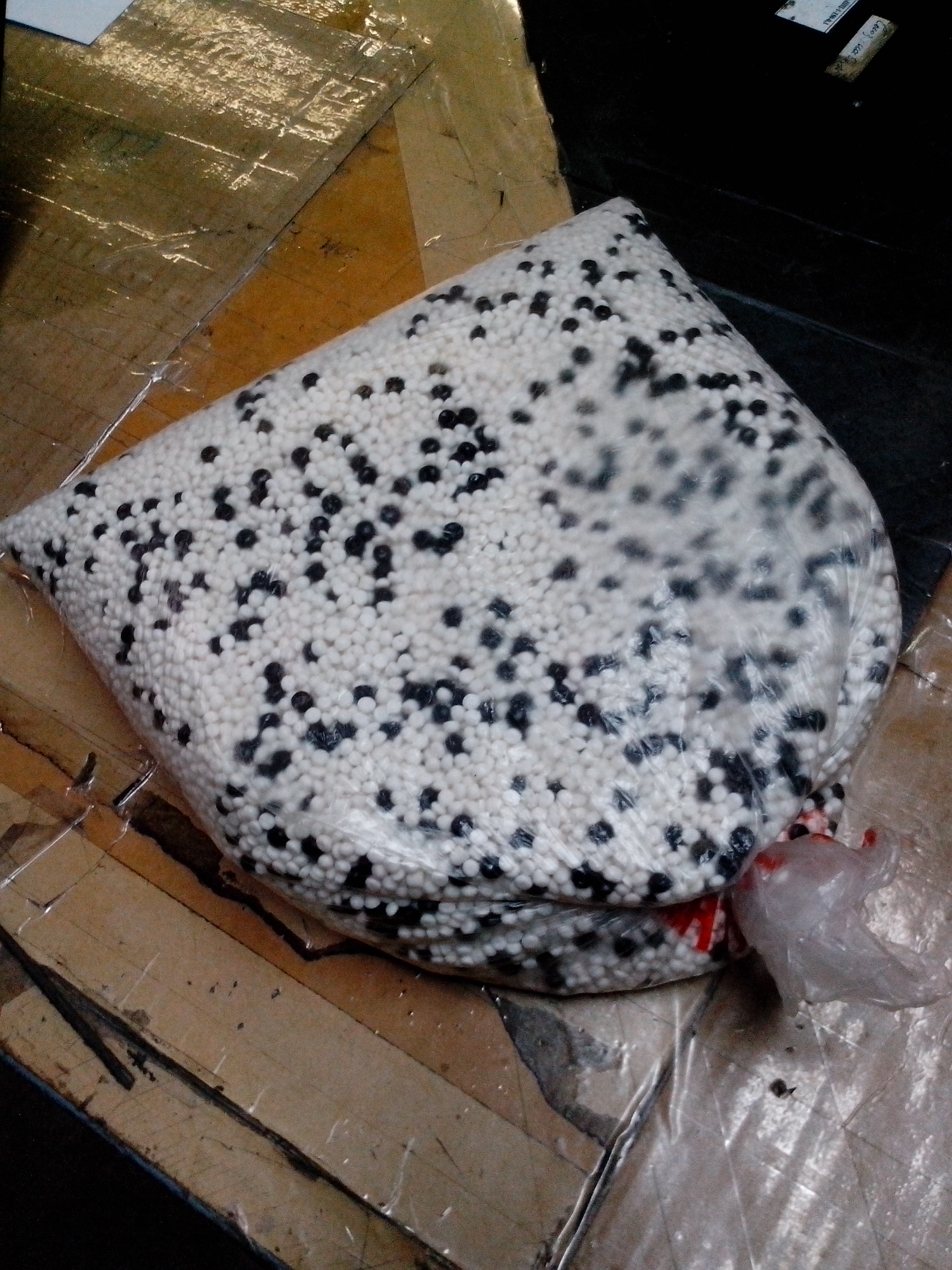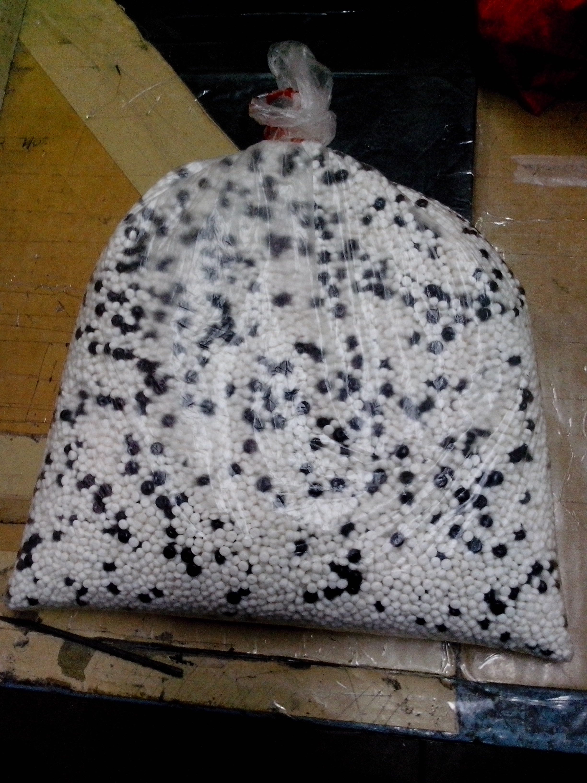 Если есть знакомые,где льют к примеру подошву,какие из пластмассы изделия-попроси насыпать гранул ТЭП (термоэластопласт) или гранулы ПЭТ(полиэтилен). Если не найдёшь-пиши. Насыплю на работе ПЭТ. Делаем оболочку на кабель из него. Не тяжёлые,отличный наполнитель для твоих целей.