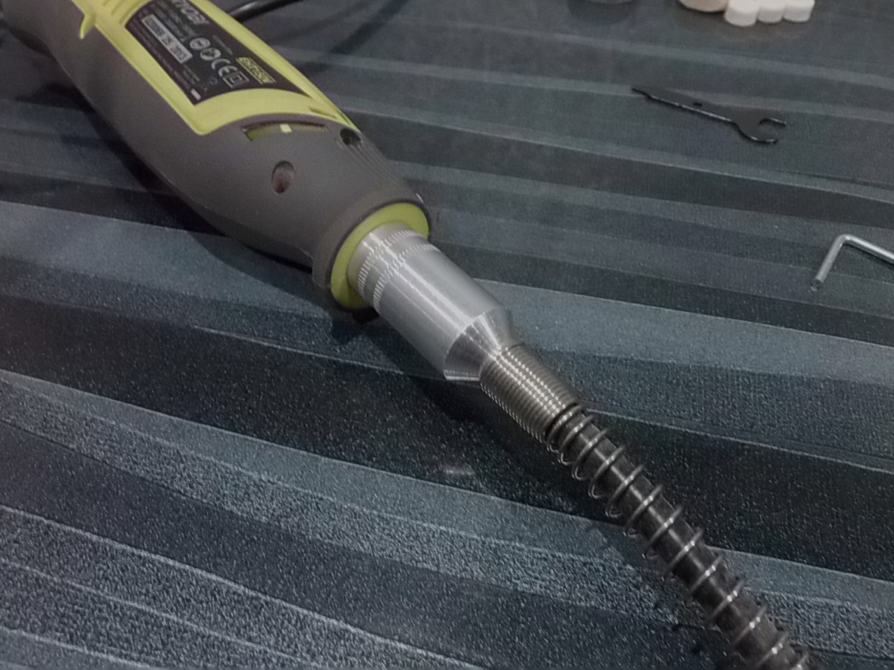 Подвешиваем машинку за предусмотренную на ней петлю на штатив.Чтобы закрепить нужную насадку на "карандаше" гибкого вала-чуть провернув патрон на гибком приводе(карандаше),совмещаем отверстие на вале привода с отверстием в корпусе "карандаша".Вставляем шпильку в совмещённые отверстия-так блокируем от проворота вал.Вставляем в патрон нужную насадку,ключиком зажимаем его.Достаём шпильку блокировки из карандаша,включаем прибор в сеть,выбираем скорость,приступаем к работе. Примерно так пошагово: