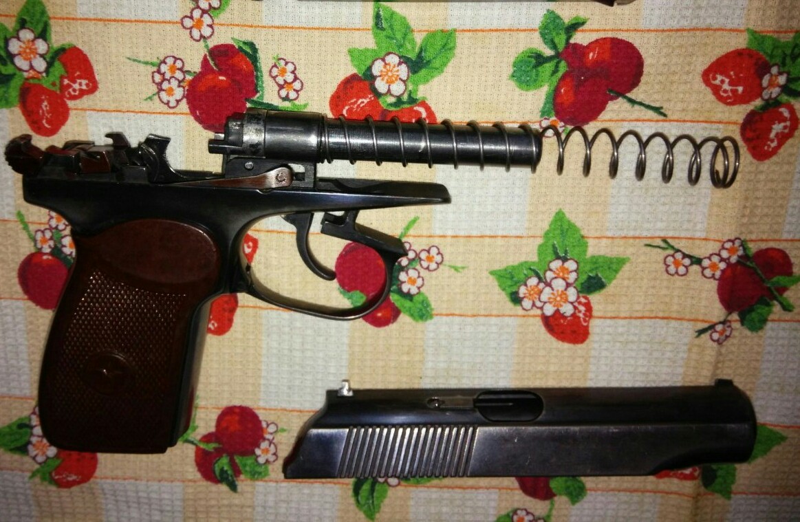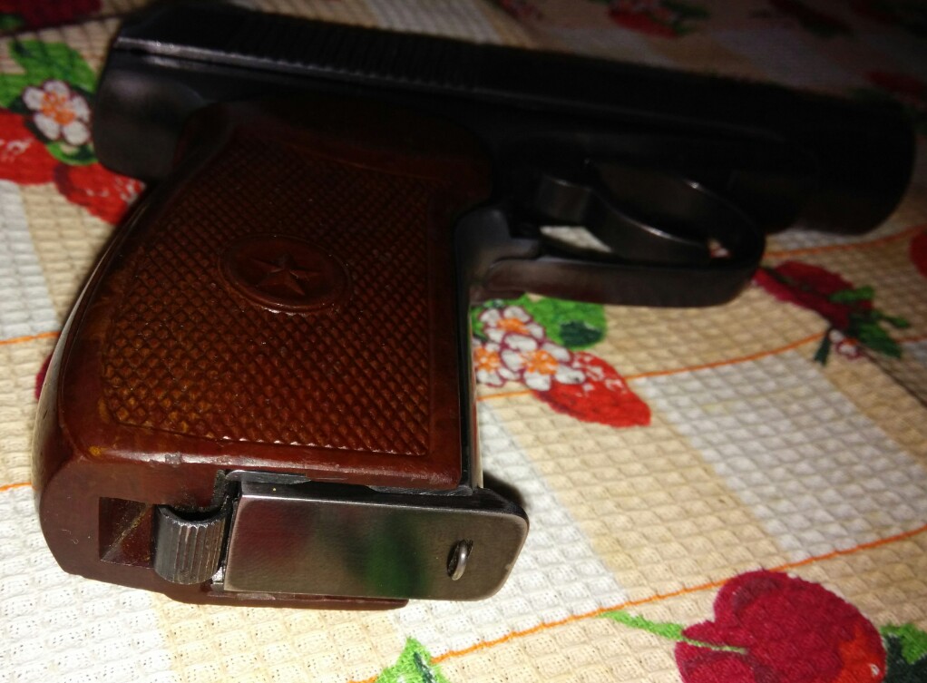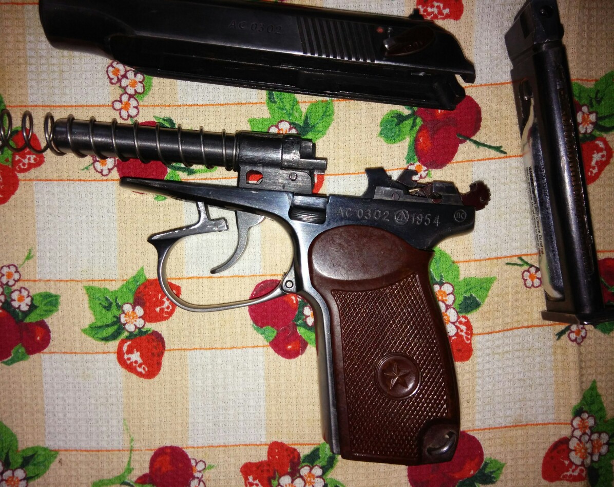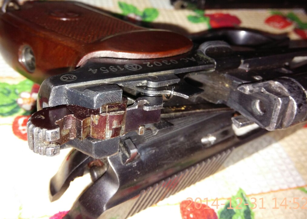 olad-78 писал(а):Из сделанного-отполирован,перебит номер на затворе и рамке,заворонен в селитре,шлифован УСМ,расточен клапан,установлена прокладка ствола,гладкий ствол,наварена гайка ствола,вклеен гнедок с выбрасывателем,установлена задвижка боевой пружины с винтом от боевого,переделана пятка магазина,установлен красный зип,наварены перегородки в рукоятке...