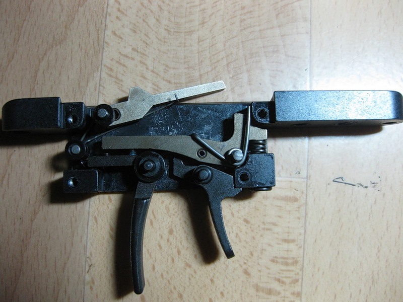 Тут вобщем марадеовский УСМ подошол, только в деревяху не влазит, я прикинул как с минимумом затрат мародеровские потроха интегрировать в кубиковский УСМ .Шептало и рычаг новые надо, дыдочки под оськи новые и оськи тоже, крючек спусковой обрезать и будет 2-х ступенчатый приятный спуск как на марадере. Надо только эрозионная резка метала.