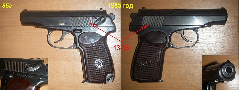 по количеству насечек ( по 13 ) все верно , а вот окно выбрасывания гильз стало прямоугольным (как в сигнальнике ) где то со второй половины 90 или даже позже.Лучше всего и проще сделать на середину -конец 90 годов так как все почти что соответствует. Тогда можно и рамку не шлифовать ) По поводу зз: