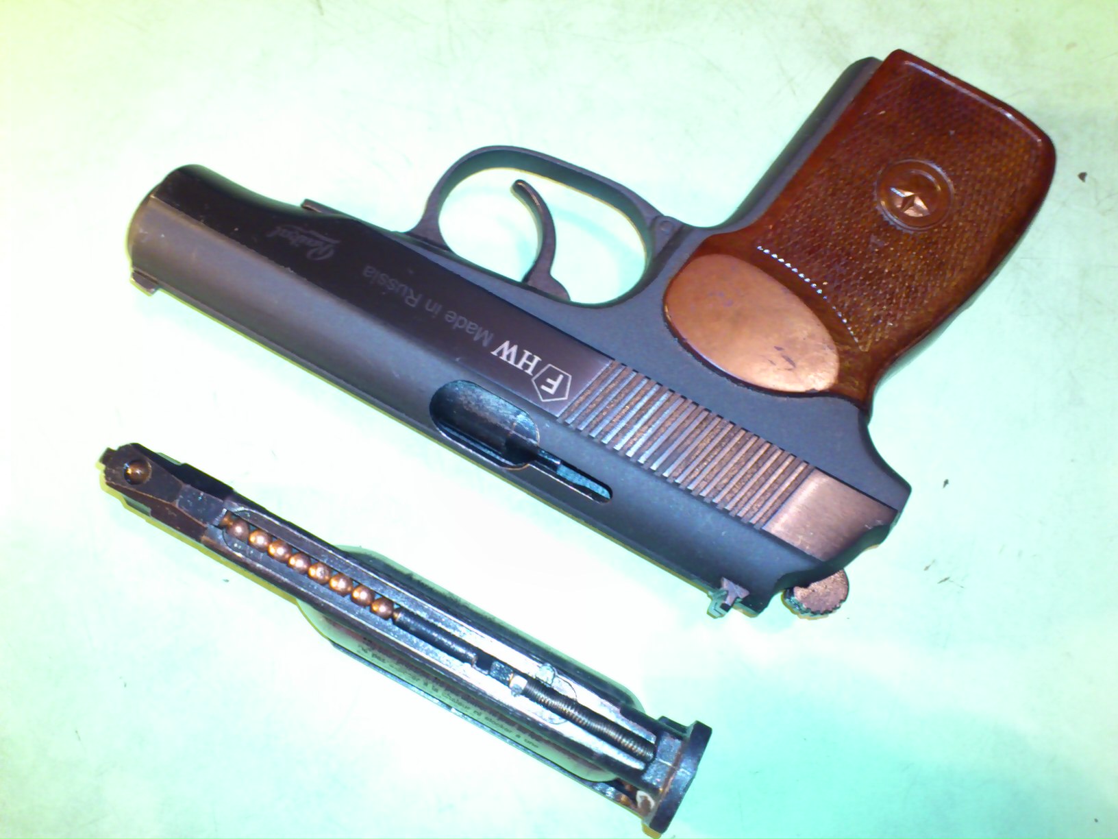 Так то китаец алюминиевый - на выбрасыватель посмотрите, на ручку, потертости блестят по аллюминиевому, буква F как любят такие игрушки маркировать. Может с другой стороны и болтики будут, обычно рамка из 2-х половинок у таких изделий