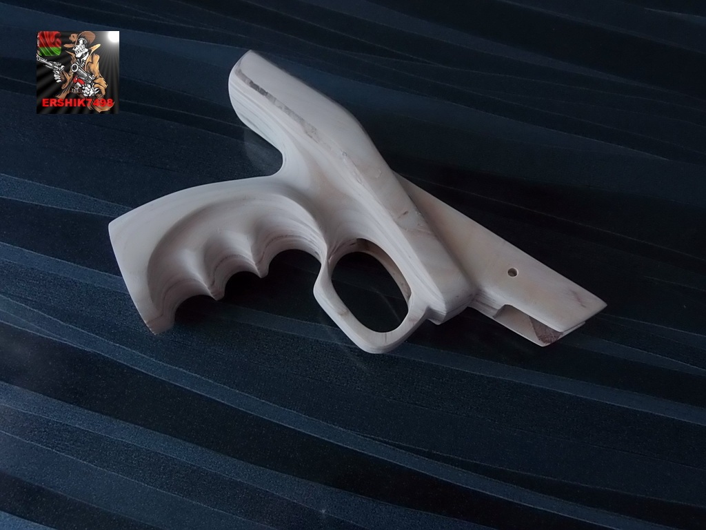 Ну и собираем пистолет.Винты применял те же,что и стояли в родной ложе, всё подошло отлично,железо крепилось в ложе надёжно.Да и удобной стала новая «одёжка» руке.Возможность стрельбы с обоих рук,на крючок давишь как положено первой фалангой пальца.Рукоять не скользкая,весьма удобная и ухватистая.Ничего не трёт,не мешает комфортному хвату и прицеливанию.Вес практически тот же,что и родной пластик.Ввиду веса пистолета не думаю что она нужна тяжёлой.Всё как просил и желал владелец: