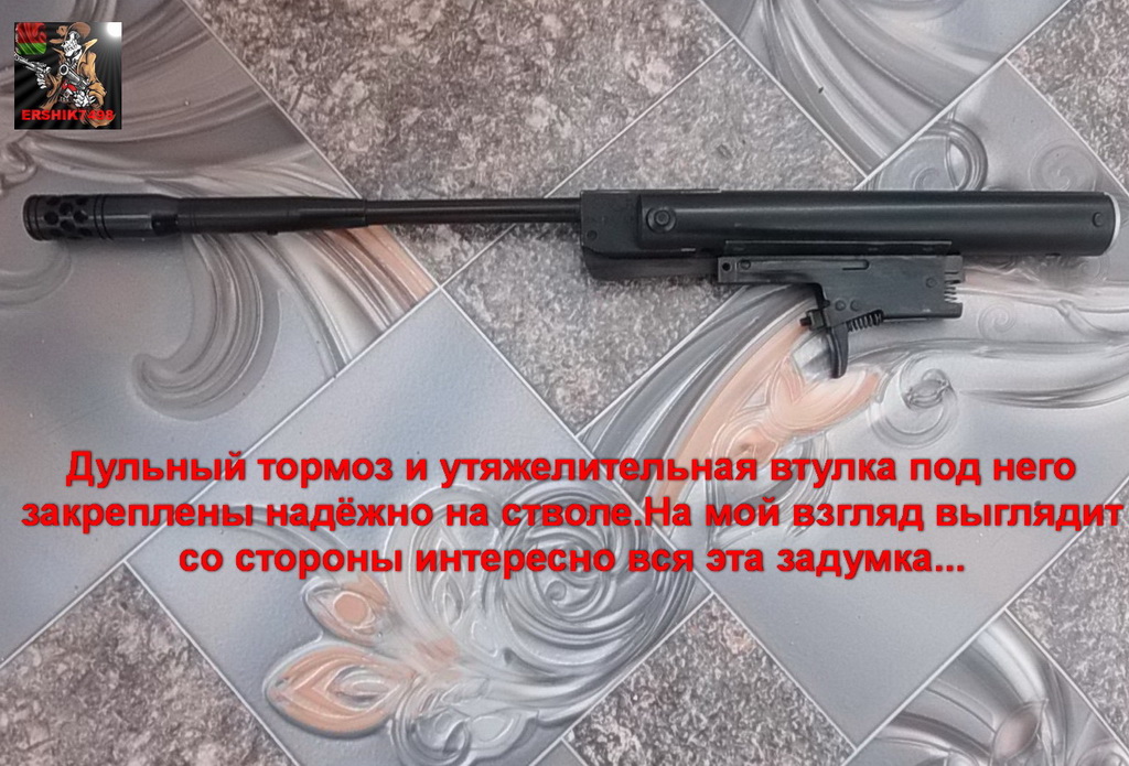 Ну а для полной и чёткой завершённости на резьбу был водружён подобно знамени шикарный надульник ДЯДИ ГЕНЫ (MAIKE).Решил сделать пареньку подарок в виде этого потрясающего изделия Геннадия.Долго берёг его в своих целях,ну да ладно,пусть парнишка пользует на добрую память-думаю Гена не откажет в изготовлении ещё одного при необходимости,а карабинчик у паренька будет на зависть всем с таким надульником: