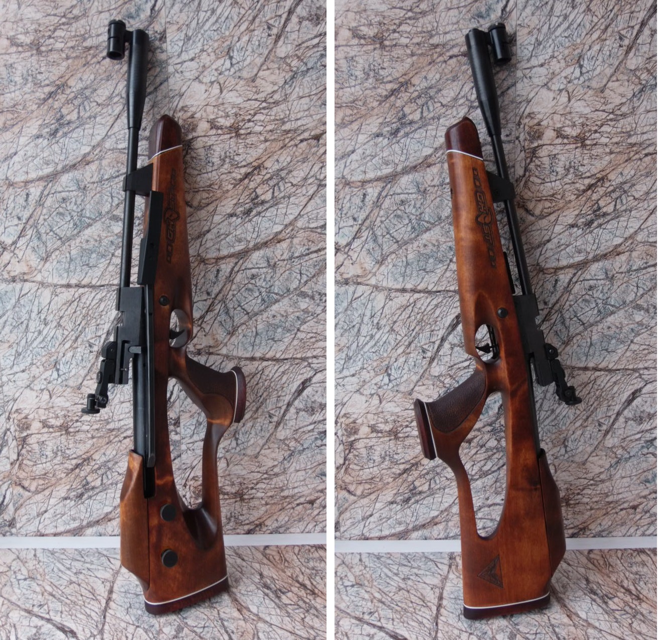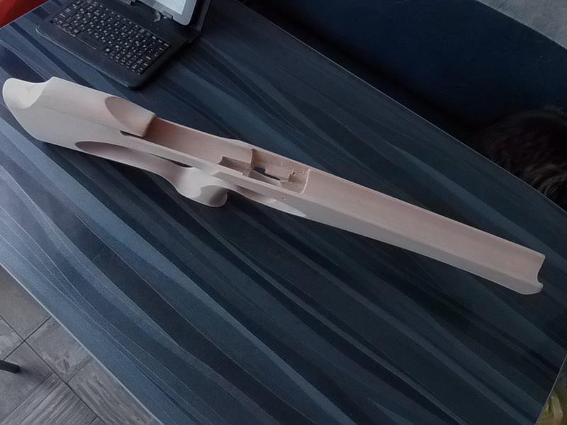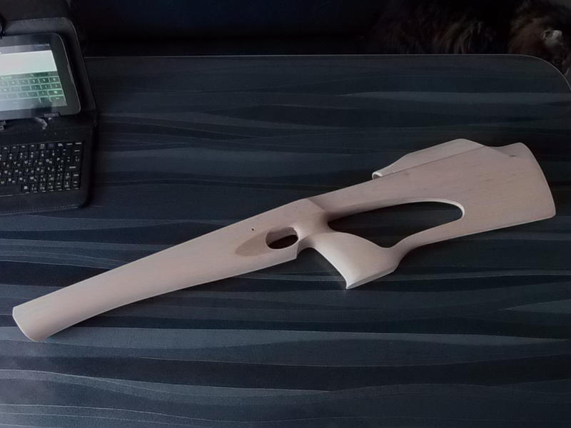 Был у меня шанс приобрести по приятной цене МР-553к. Загорелся я,но владелец сразу не продал его-сказал обождать немного. Чтобы время не терять,а получив этот «кислотник»-сразу «одеть» его в желаемую ложу,отложить решил всё начатое и приступить к этому проекту. В то время доделывал как раз свою «СВТ» на базе «Мурки». Но вот была проблемка-не на чем было примерять и т.д. выборку в ложе,не смог отыскать у кого-нибудь Ижика такого в качестве «лекала».Ладно остальное-это мелочи,а вот выборку нужно делать конечно точно. Да и с «СВТ» уже долго возился,оставались совсем мелочи и откладывать ещё на полгода совсем не хотелось.Решил обратиться к другу Митьке,парень он открытый к диалогу,после коротких объяснений ситуации и пожеланий,согласился Митяй мне помочь в моей проблемке.Договорились что основу он мне сделает,а весь отделочный процесс достанется мне.В итоге обещанное мне Димон выполнил и перевыполнил, прислал шикарный результат: Выборки все были,всё что нужно снималось,ставилось.Отверстия крепежа в боках точно просверлены,по длине-как по меркам делал мастер!!! Стал я тормошить продавца,мол давай,всё готово и еду забирать.На что мне был дан ответ: «Так я её уже продал…»!!! В общем «опрокинули» меня через «Х»,ложа так и оставалась мёртвым грузом на шкафу…Ну а с поросёнком тем я дел больше не имею, и иметь не хочу вовсе…