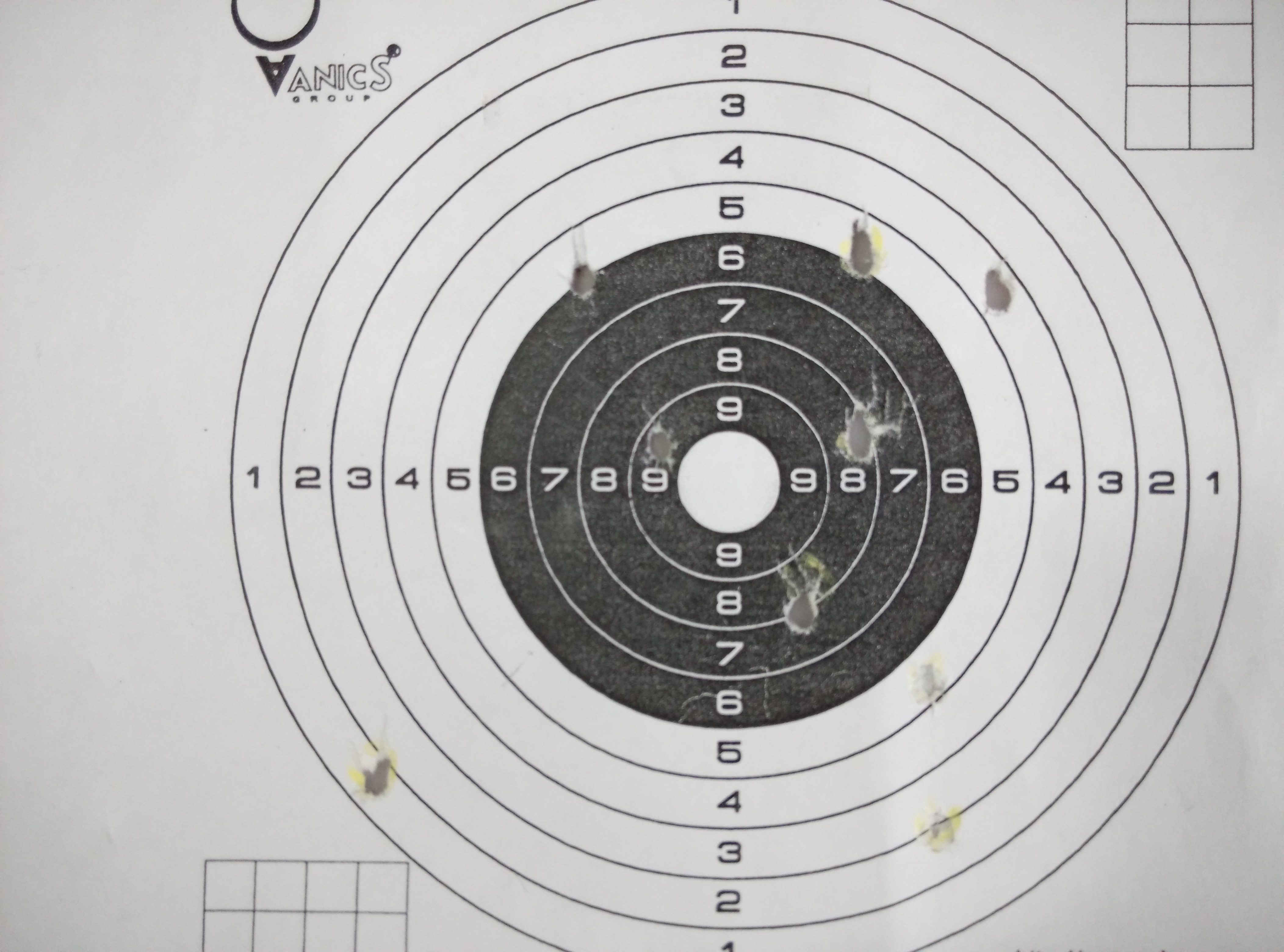 Отстрел немного огорчил. На 656 и 654 у меня (чтобы соблюсти «чистоту эксперимента») результаты лучше. Но надо сказать, что подобного девайса, до этого в руках не было. Вес его (почти как у боевого) более 1 кг. И к этому тоже надо приспособиться. Как недостаток, влияющий на «меткость», по моему – это толщина мушки. Целик «треугольный», а мушка «квадратная» и перекрывает сектор прицеливания, надо искать оптимум «интуитивно». Это напрягает. Хотя «куча» не плохая, по моему.