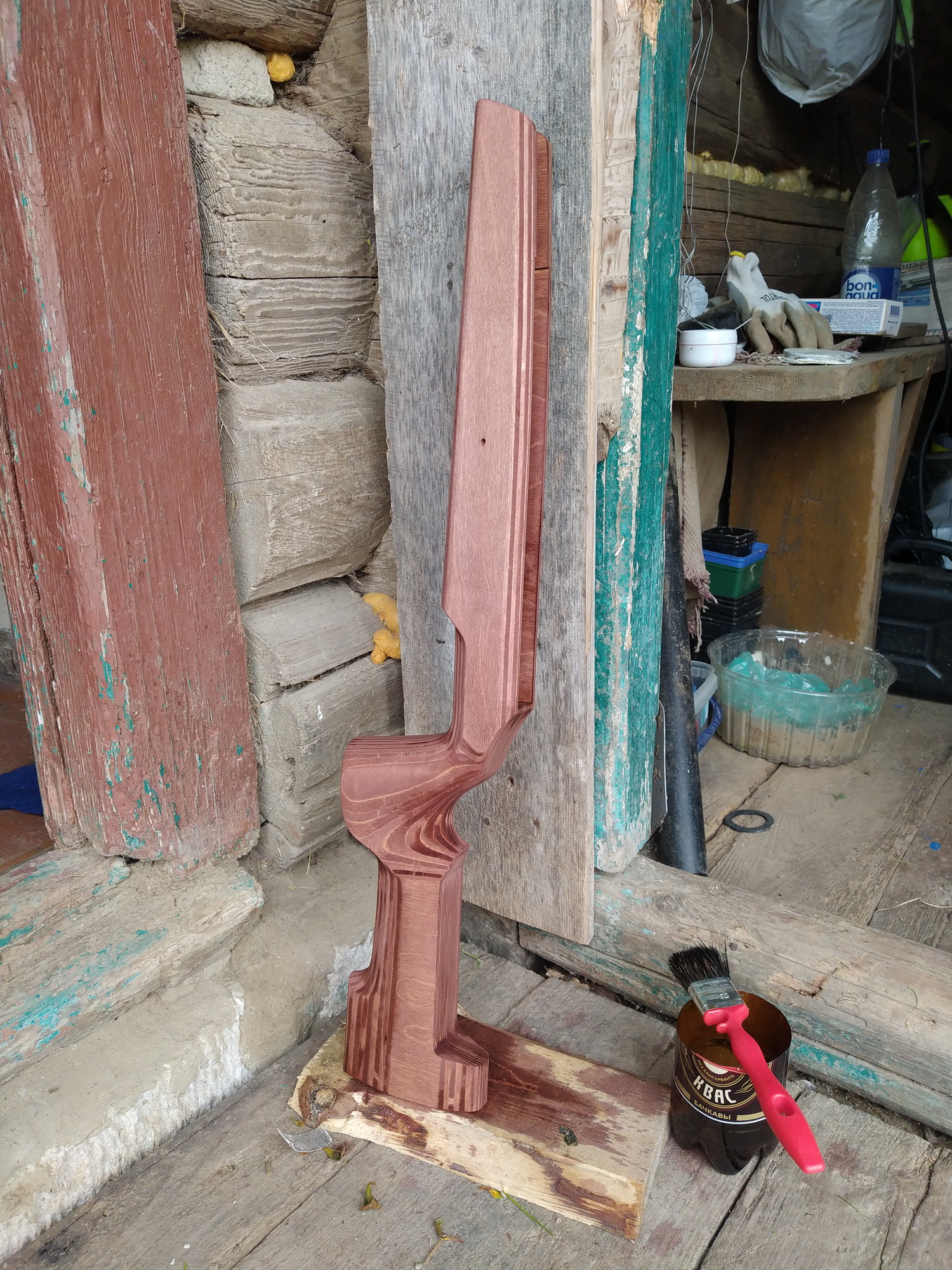 В прошлом году сделал я для МРки ложу Cсылка скрыта. Для просмотра необходима регистрация на форуме или войдите на форум. Хорошая получилась, прикладистая. Долго корпел я над формой, размерами-длинами, долго и с проблемами подбирал колеровку будущего изделия, но в итоге пришлось с ней расстаться. Было там пару нюансов которые не давали мне покоя. Были мысли взять напильник и быстренько всё подправить. Однако, решил не портить и продал ложу хорошему человеку, "точных ему выстрелов" как говорится!