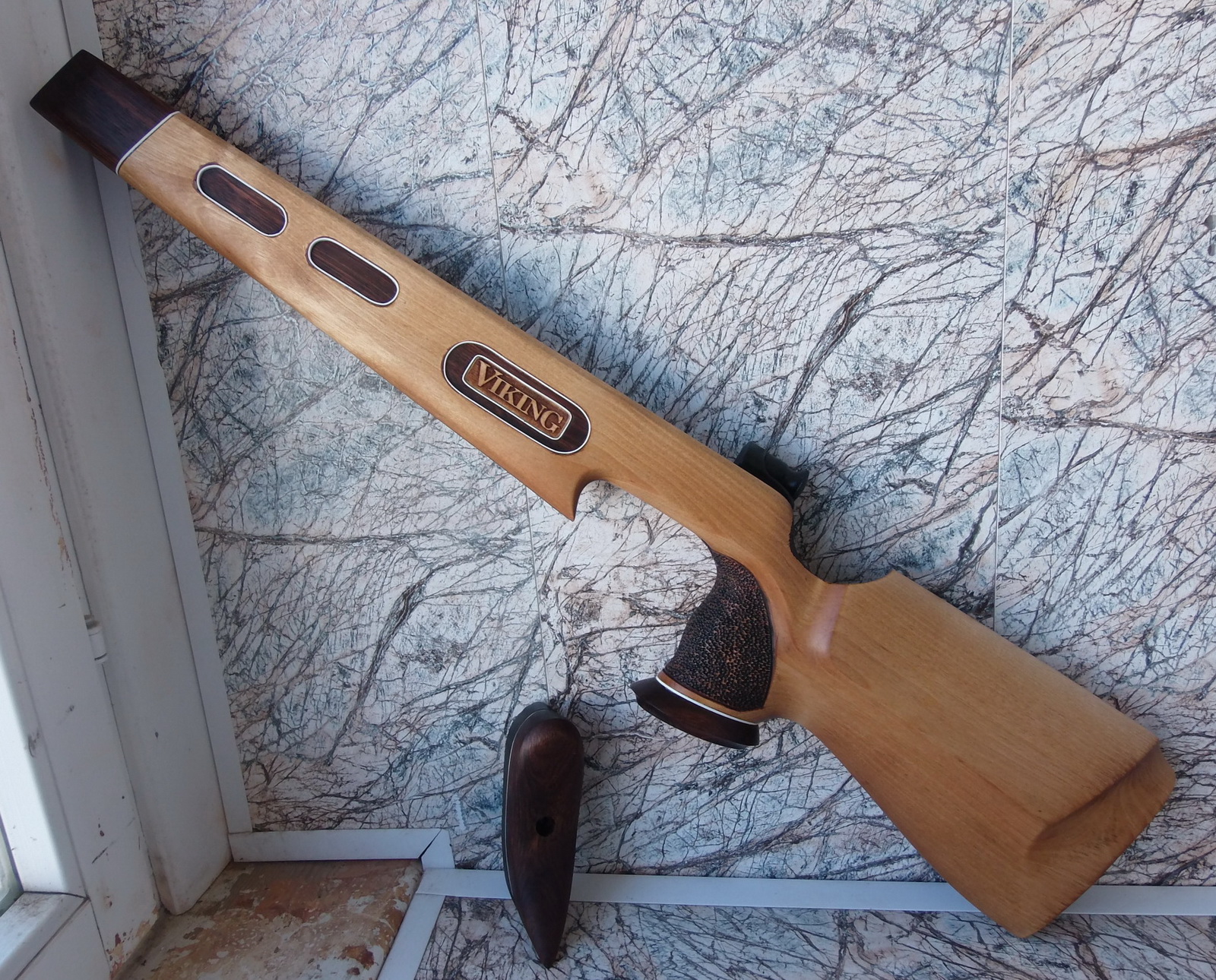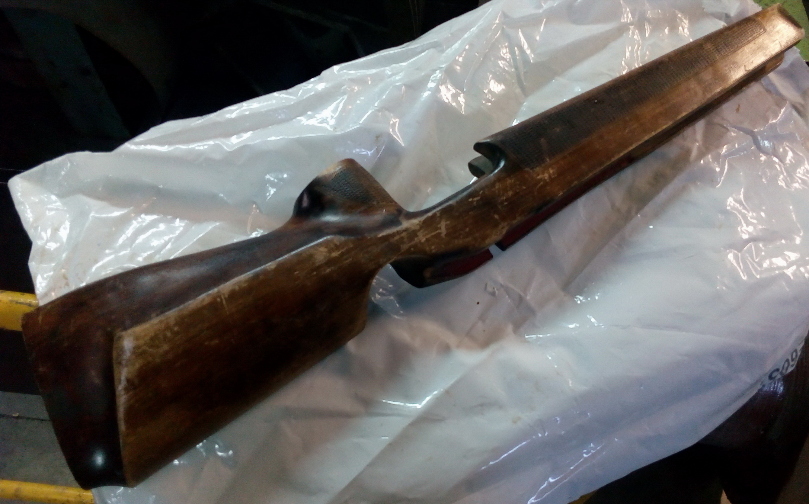 Итак… Появился ИЖ, купил на барахолке весьма интересную старенькую ложу от малокалиберной советской винтовки «Урал 6-1». Требовала она конечно работы немалой, в итоге потрудился я над её доработкой основательно. Оно того стоило-хотелось по-настоящему эксклюзивного, не похожую ни на одну «ИЖ-38». Вот от такой винтовочки была приобретена ложа из берёзы: