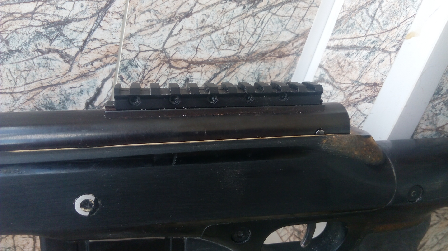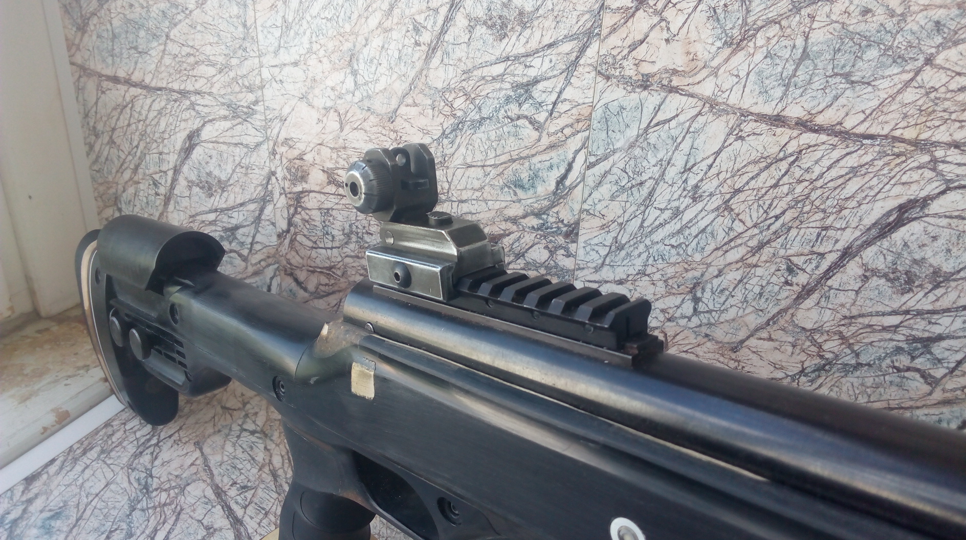 А планировал использовать целик с поворотным регулируемым диоптром и на ствол установить намушник повыше-регулируемый по высоте+ целик тот складной был и металлический. Т.е. длина прицельной линии выходила куда большей, чем стоящий на казне целик +мушка на стволе. В плане точности более длинная прицельная линия конечно лучше. Вот подгон от господ страйкболистов. Нужно только покрасить будет: