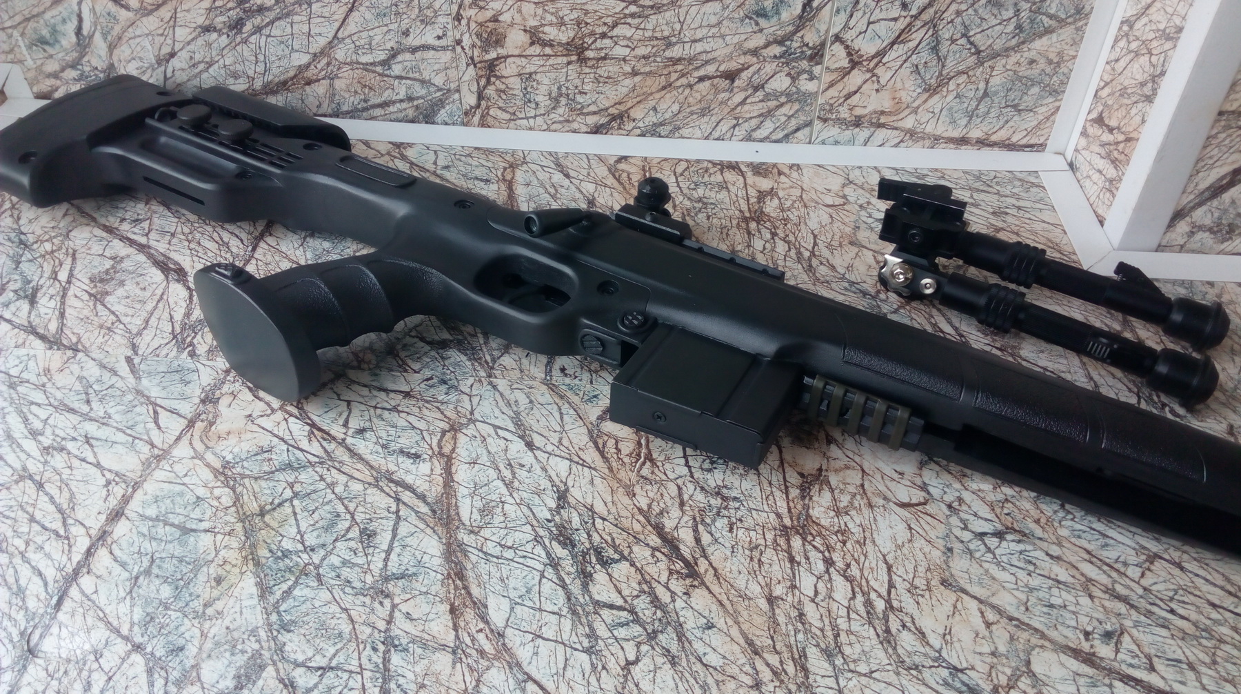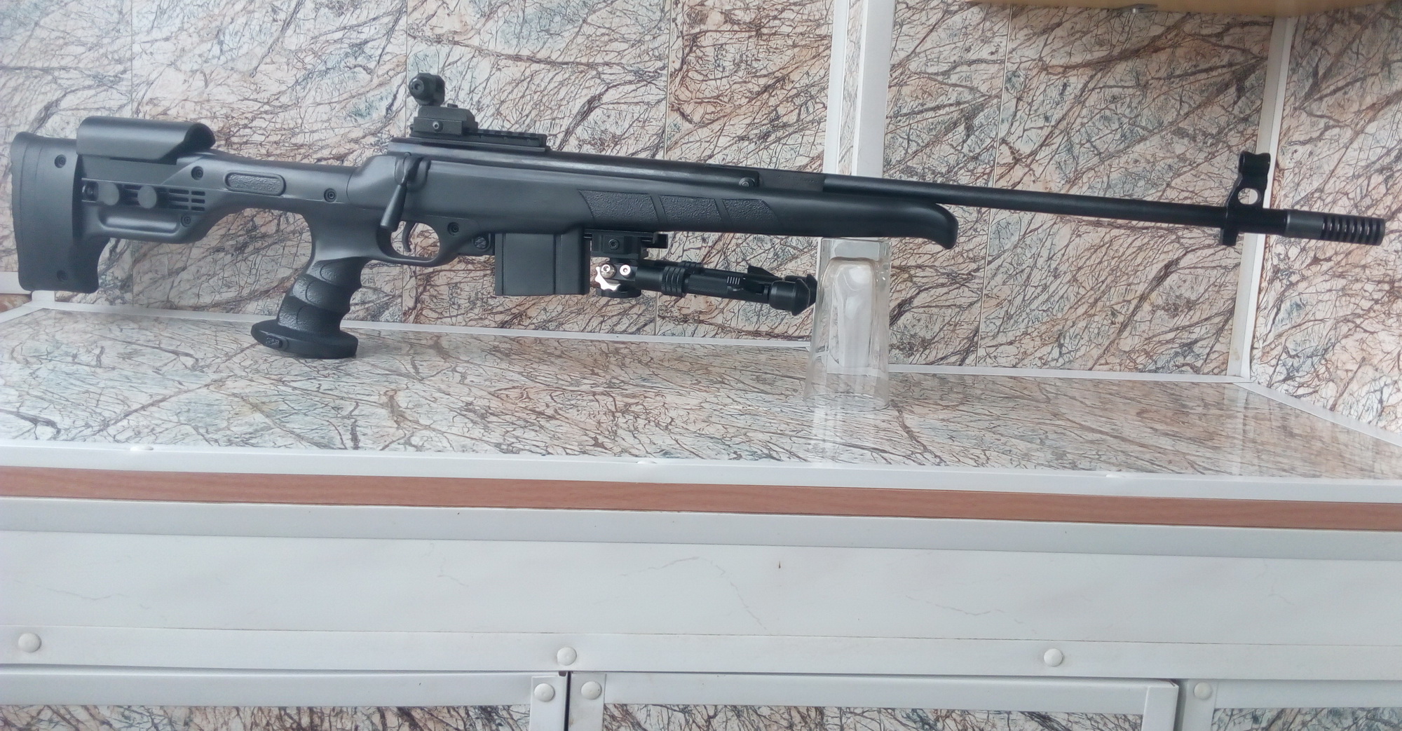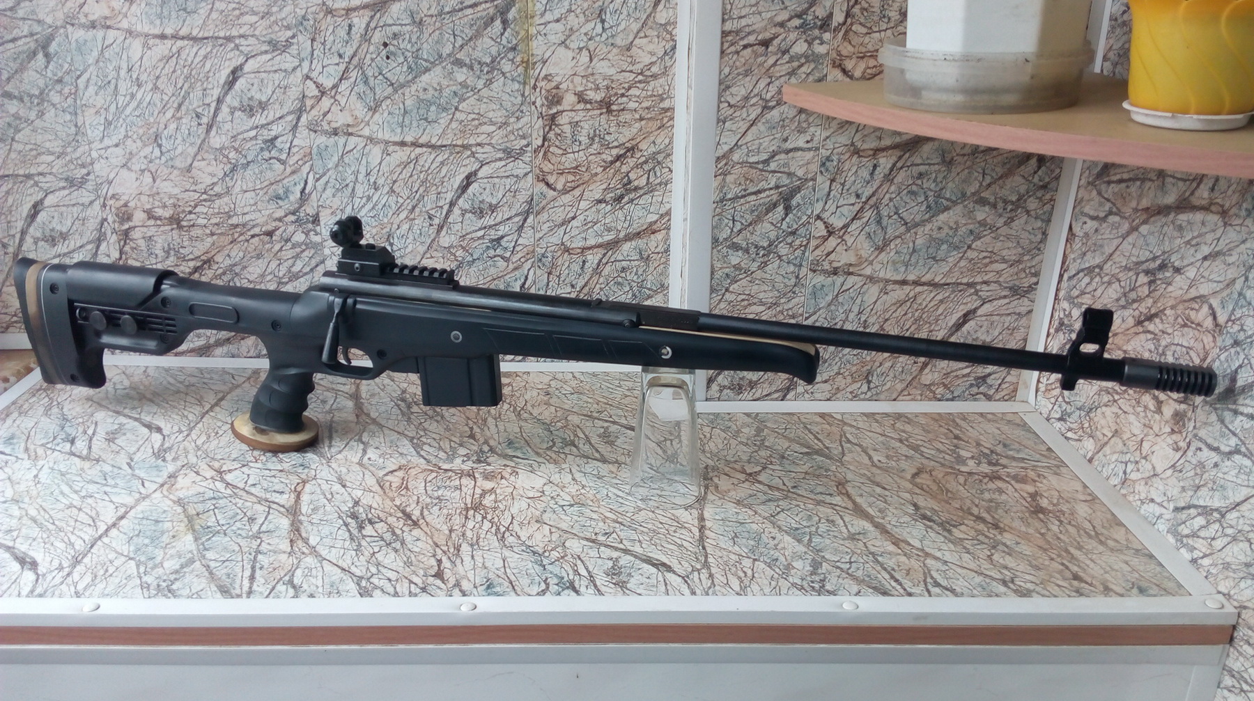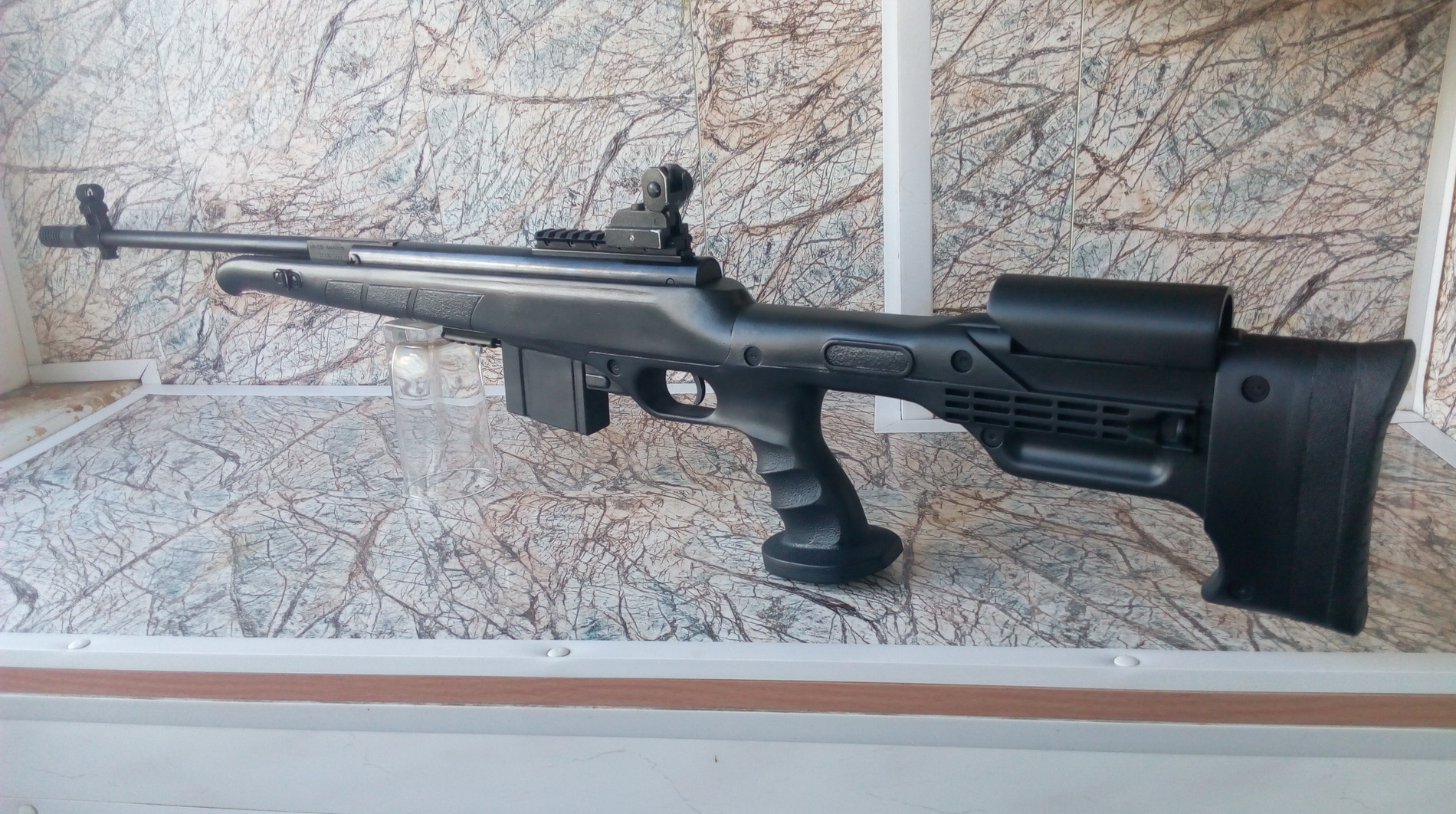 И вот перед нами вот такая интересная «Мурка» рождается. В таком виде предстала моя «винтовка марксмана»-того самого пехотного снайпера. Думаю всё-таки было правильным решение добавить стебель затвора на изделии. Что-то в очертаниях есть от «Тикка» или от «Штейер» мне кажется, да блин и интересно! Эксклюзив же))))))))