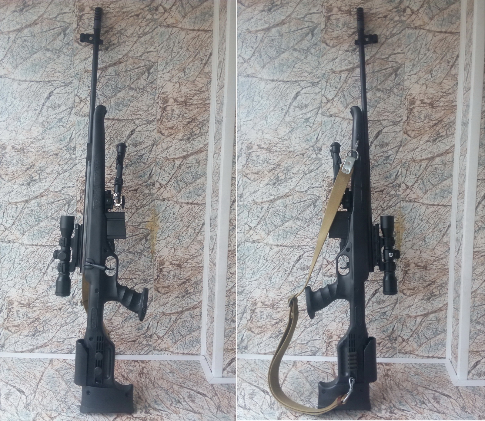 Более строго на мой взгляд выглядит винтовка с более габаритным прицелом. Хотя фломастеры на вкус у всех разные и думаю возможный обладатель данного изделия сам выберет себе оптику по душе.