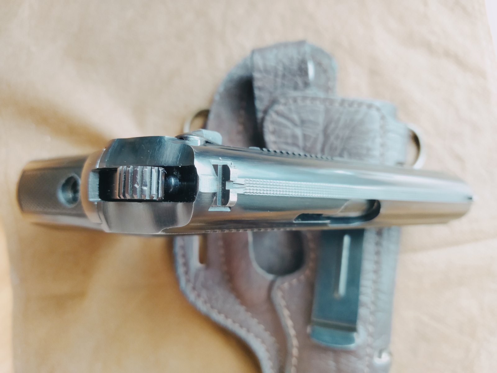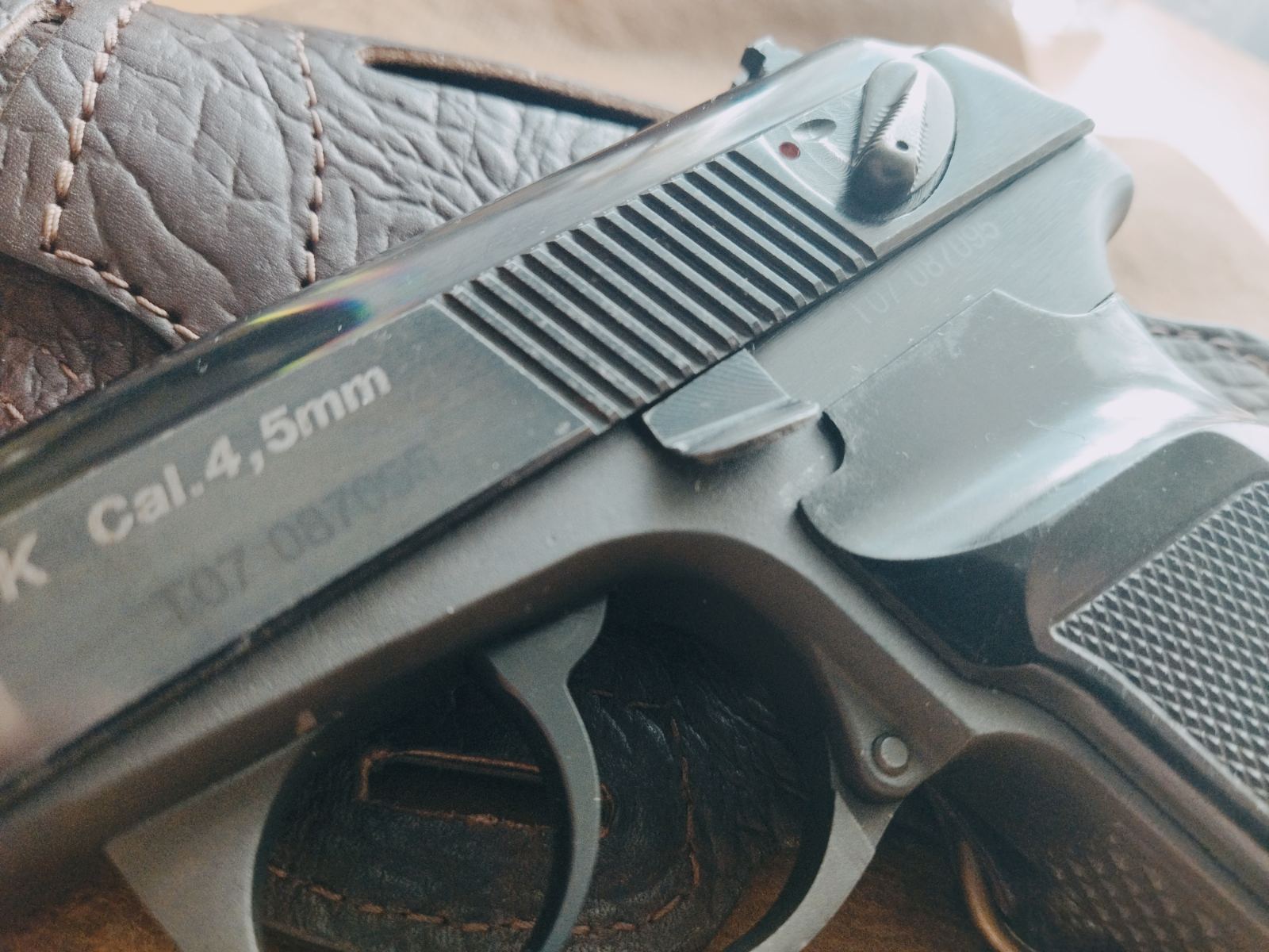 Кованый затвор, овальное окно, широкие направляющие рамки, хорошие ровные фаски, широкий антиблик, жирные насечки, отличная геометрия, оригинальная полнотелая накладка ПММ с антабкой.