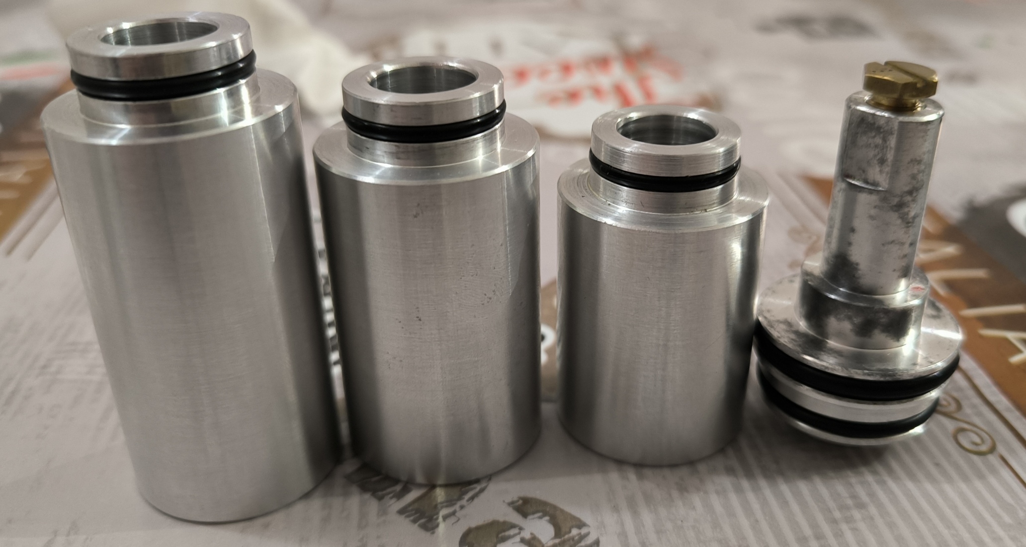 2) Редуктор на Крюгерган Снайпер штатный 110-150 атм. вкладной в комплекте 3 стакана заредукторного давления на 30, 40 и 50 кубиков, набор РТИ. Редуктор перебирался, внутри заменена смазка и резиновые уплотнения, работает штатно, есть метки настройки на 110 и 130 атм. Цена 140 рублей.