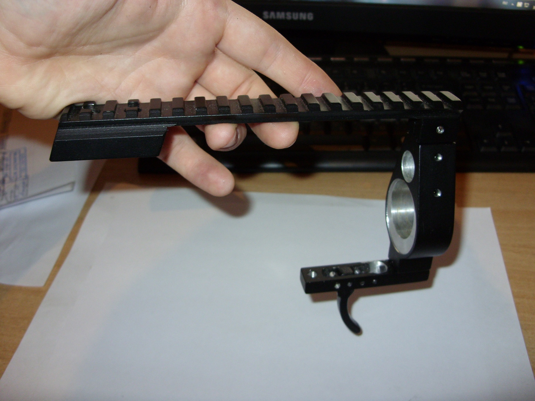 Перенос спуска и прицела для Хатсан ат44-10, б.у. немного с косяком, человек который его делал про...л размер под резик, пришлось выточить втулку с эксцентриком, отверстие под ствол 16мм под резик 31мм, шина вивер, длина 190мм, продаю за ненадобностью. 80 этих самых единиц) дорогонах принимается.