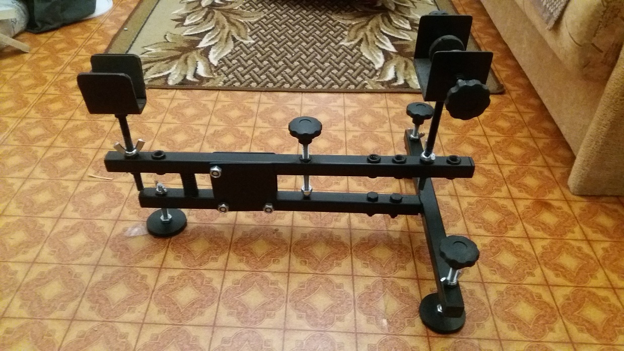 № 2 . Станок универсальный для пристрелки пневматики версия 2.0 :-): , движение упоров для ложе на втулках , регулировка ножек на втулках и барашками , для всех типов ложе. Цена 170 руб .