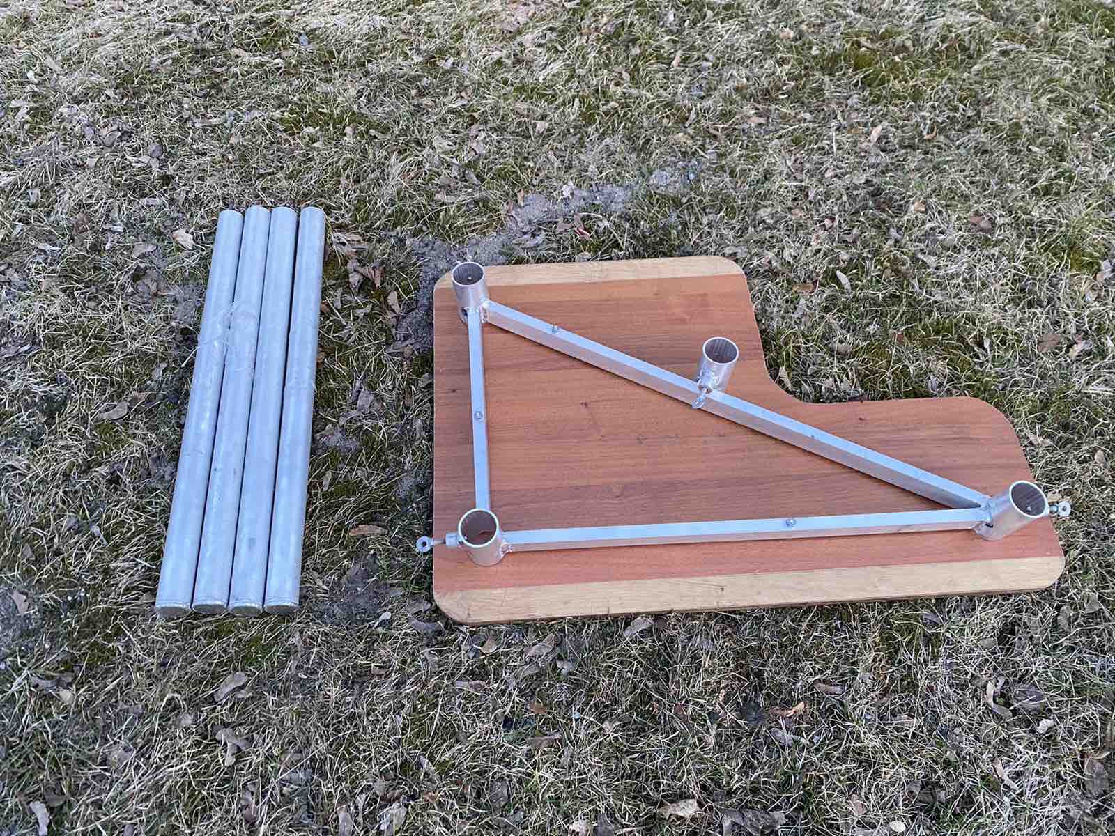 Делал для себя.Ноги труба ф50,каркас алюминий труба 20/40