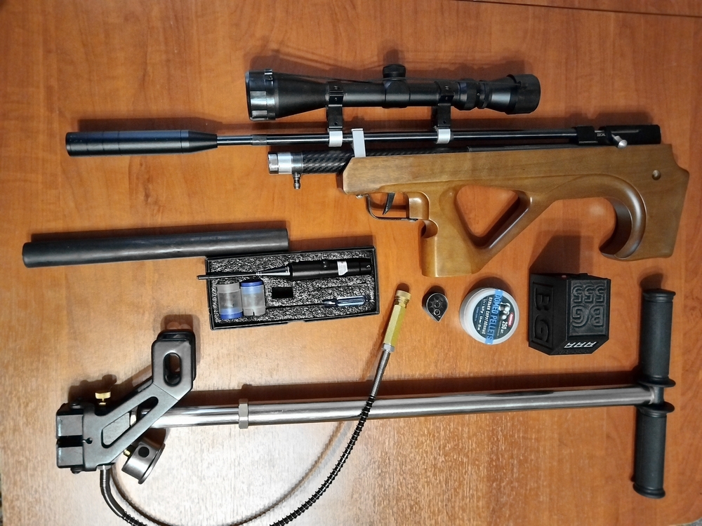 В продаже рср винтовка BLACK STRIKE "В024М bullpup в калибре 5.5 мм.Рессивер 100см. Настроена на давление от 160 до 100 бар. Скорость от 19 до 21 м/сек. В этом промежутке может до 30 пуков.Картонные мишени на 40 метров берёт уверенно. Выше разгонять нет смысла. теряется точность. Разогнать можно до 31 м/сек (см фото)
