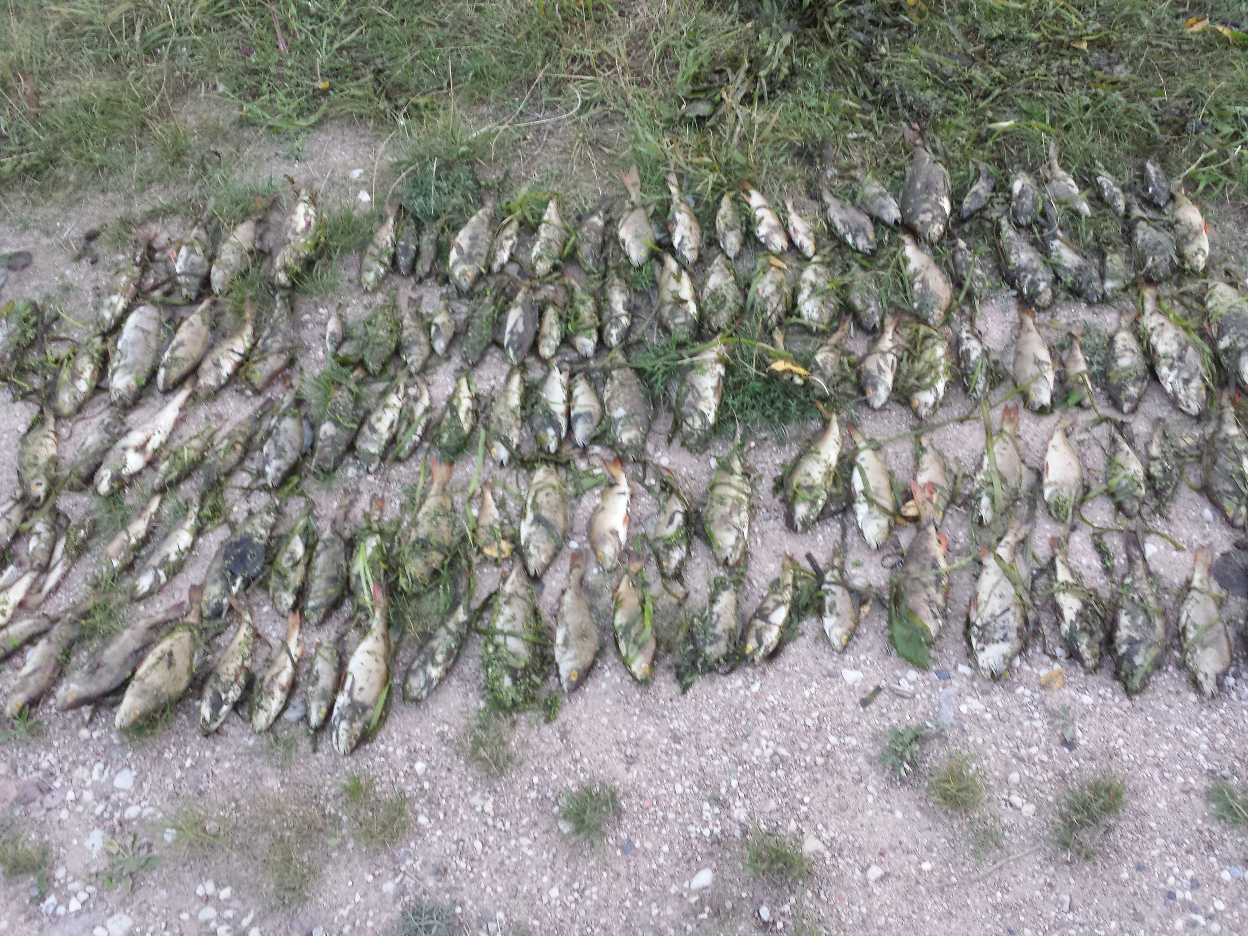 «Был там за неделю до того, хорошо провел время. А вчера еду, смотрю: ничего себе, вроде распогодилось, а ни одного рыбака нет, чайки кружатся, что-то не то. Подъезжаю, а со стороны города все завалено дохлой рыбой… Рыба всякая: карп и щука, килограмма по два и три, мелочь — просто прибита к берегу. И чайка дохлая рядом, которая вроде ела эту рыбу».