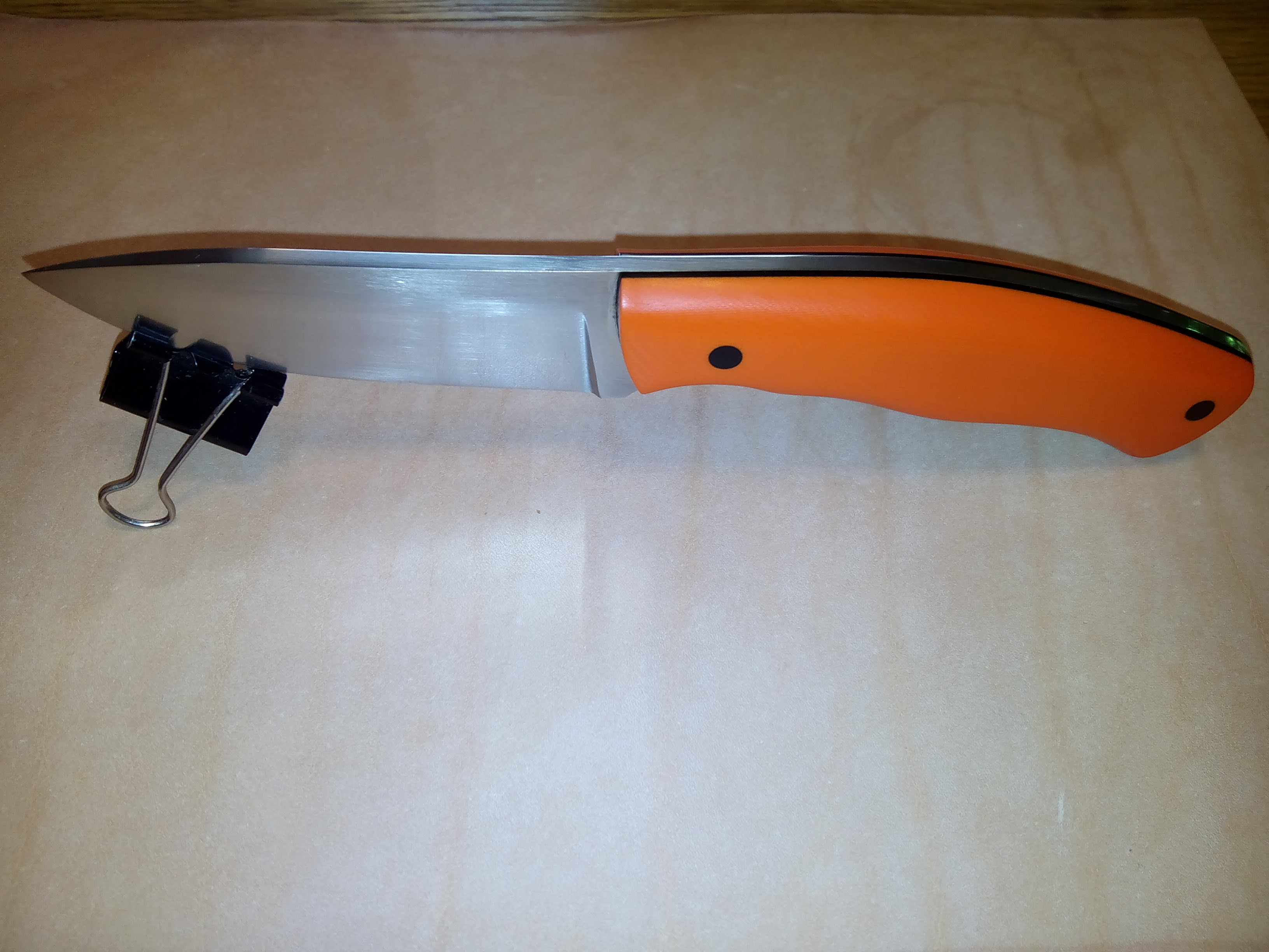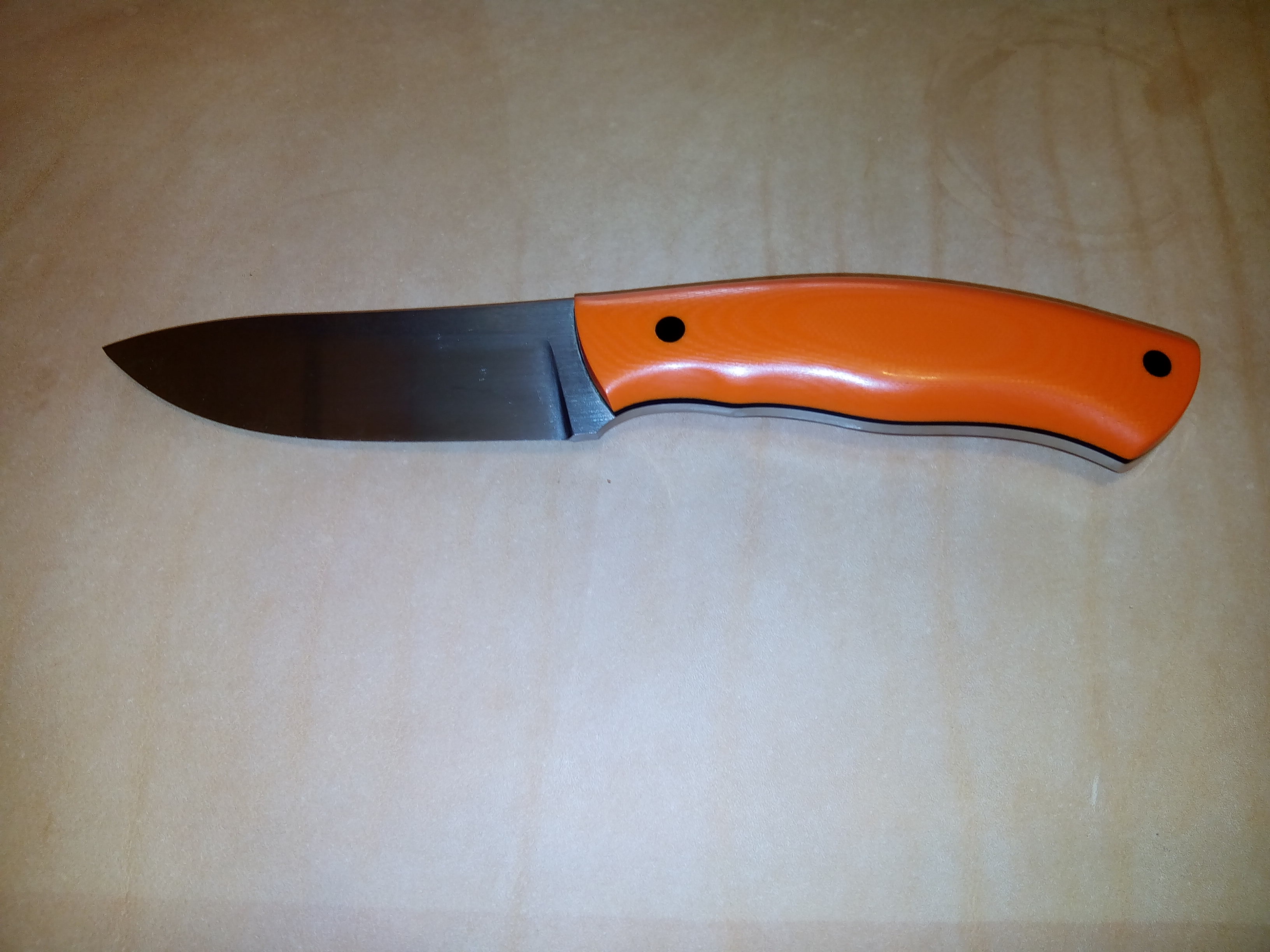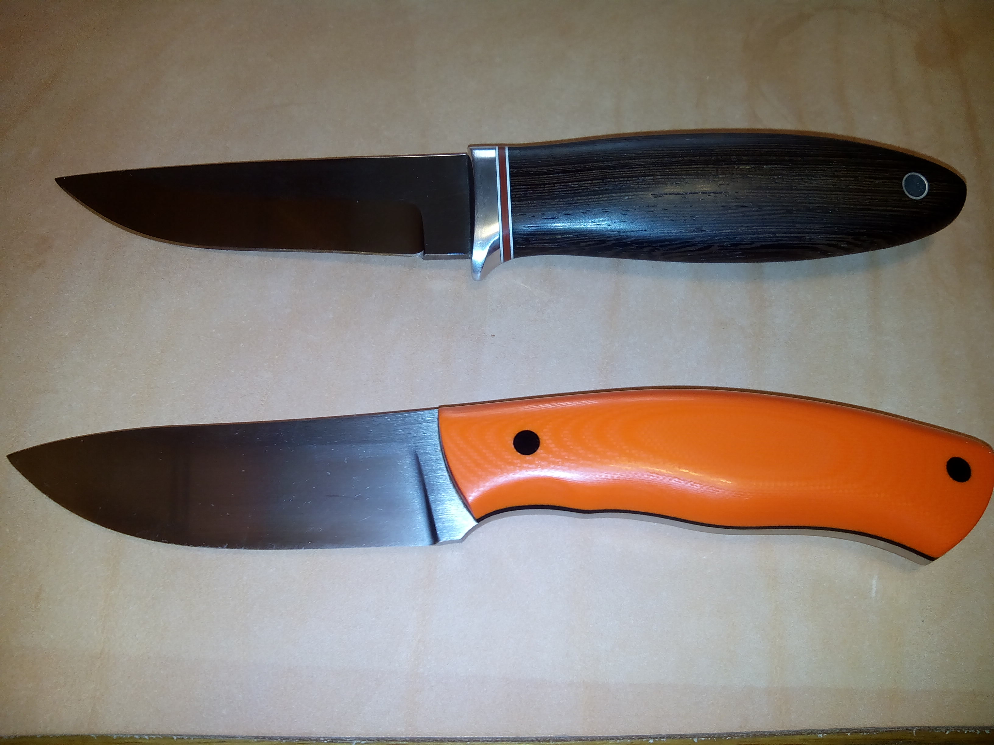 по этому и хз2длинна клинка 90мм ВТОРОЙ ручка дж10 морковка заклепки текстолит черные прокладочки дж на ручке сталь 12мф закалка от джефри60-62 сборка и исполнение влада респект и уважуха мастеру!