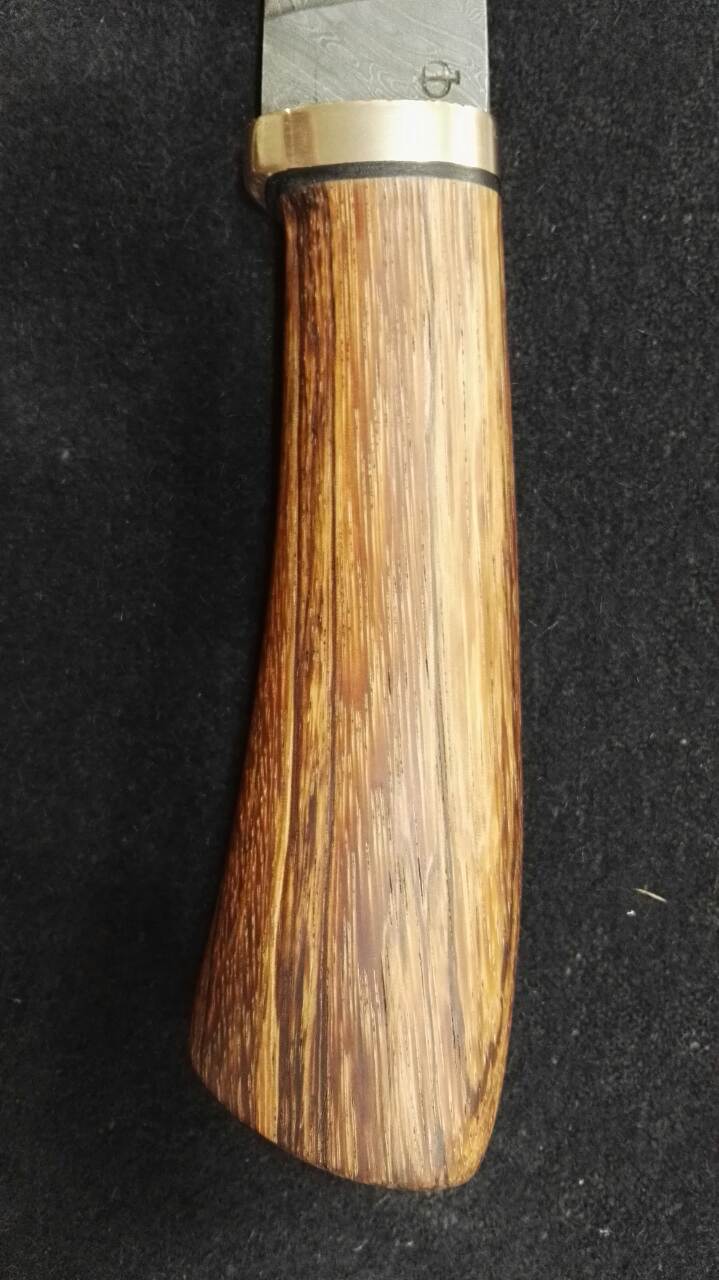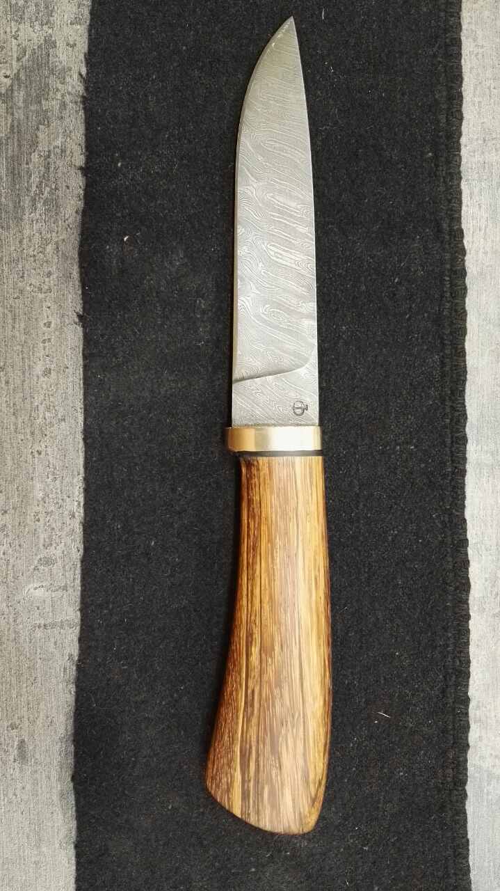 3.охотничий нож, дамасская сталь автор клинка мастер Федотов, твердость 59-61HRC, рукоять зебрано, бронза, кожа, пропитка тунговое масло
