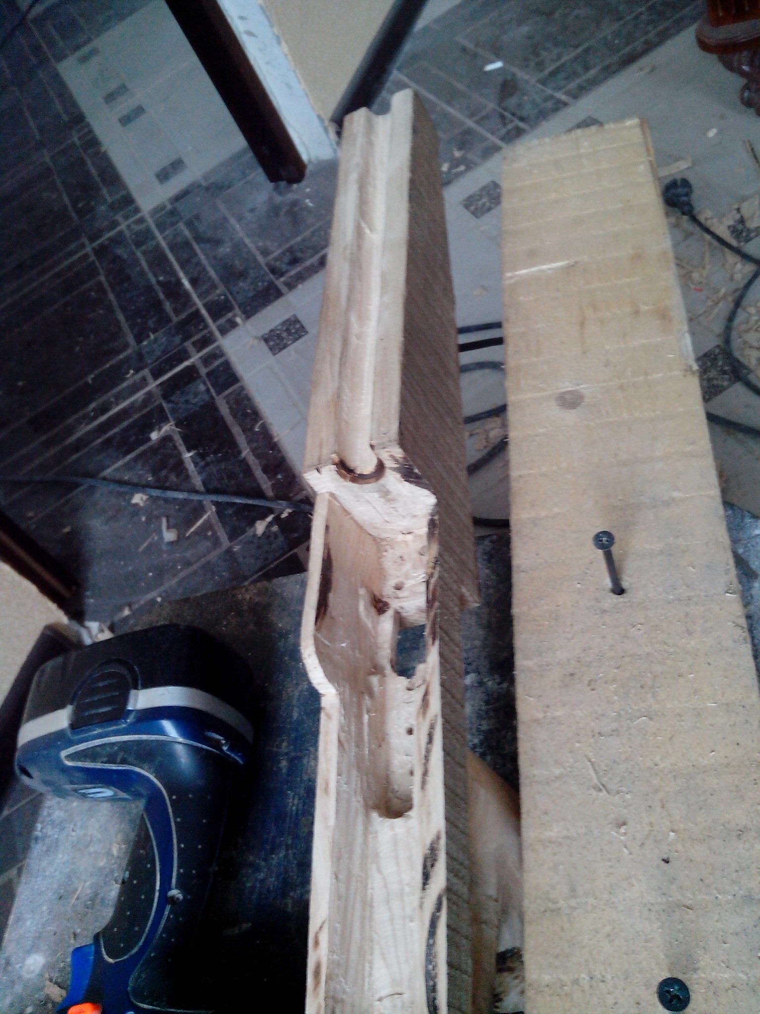 Синяя изолента закончилась, поэтому засверлю в рукояти сквозняк и посажу на мебельную стяжку. Дребезжания не будет, т.к. всё сидит плотненько.