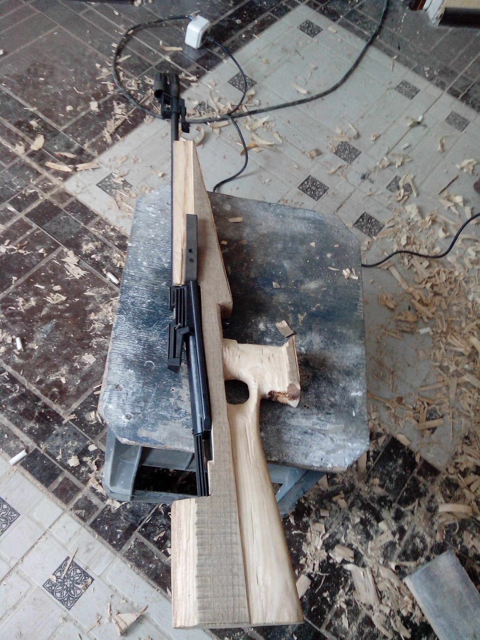 Придумать, что-то новое в буратиностроении очень тяжело если не придумать какой нибудь сцукамегабластер расписанный под хохлому, может и похоже (бенджамин например), но скажу честно за образец ничего не брал, все из головы, как рука легла так и рубил :-): . Лег на прикладку ежик очень даже ничего. Скоба и все остальное позже, зуд разбирал захвалиться. :uch_tiv: