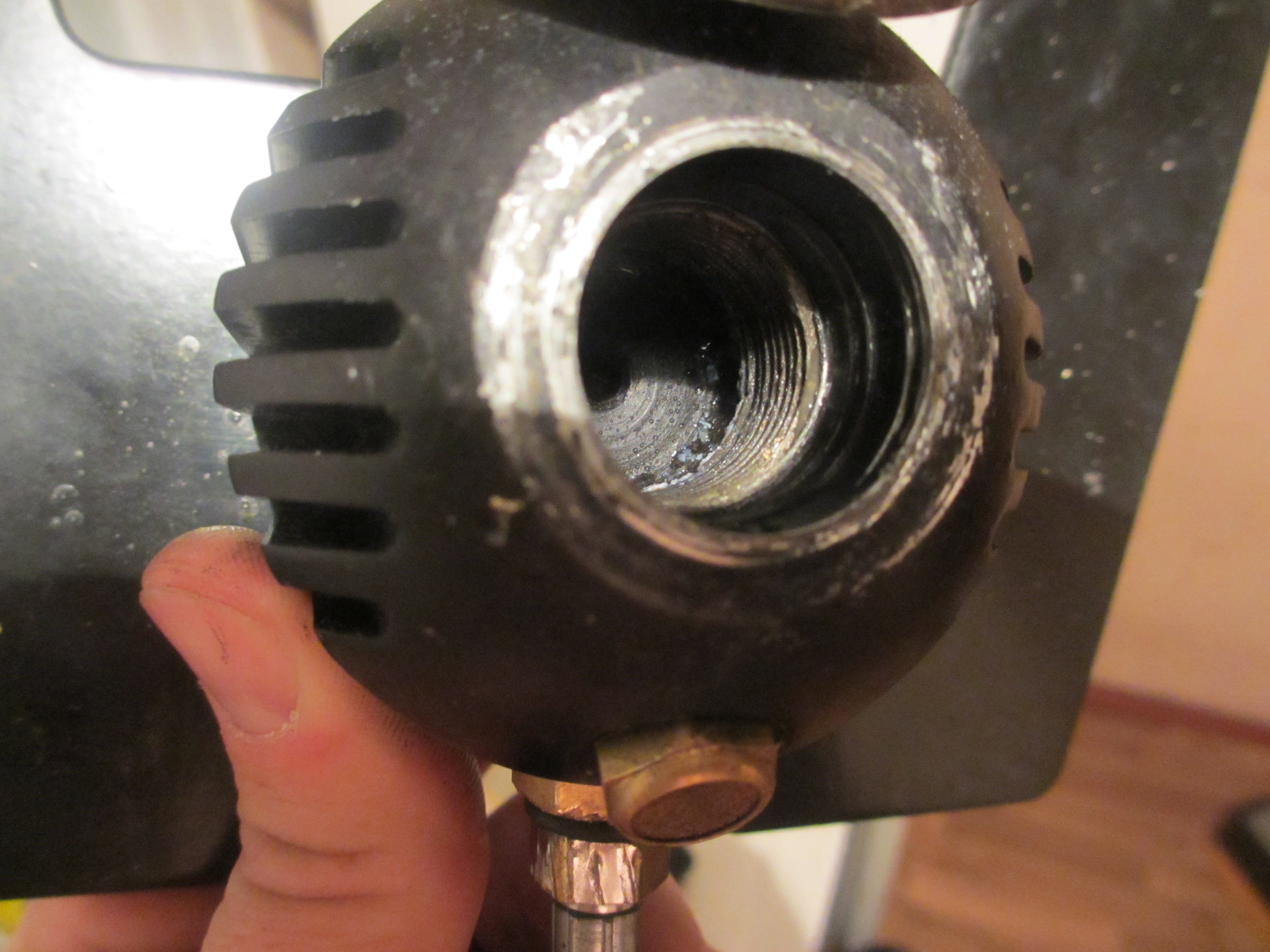 Давление он все-таки дает - накачал им 230 бар, дальше не стал. А вот производительность заметно снизилась. Прямо чувствуется, как сжатый воздух перетекает назад в камеры низкого давления. Видимо дают о себе знать неплотности, вызванные раковинами на зеркалах труб.