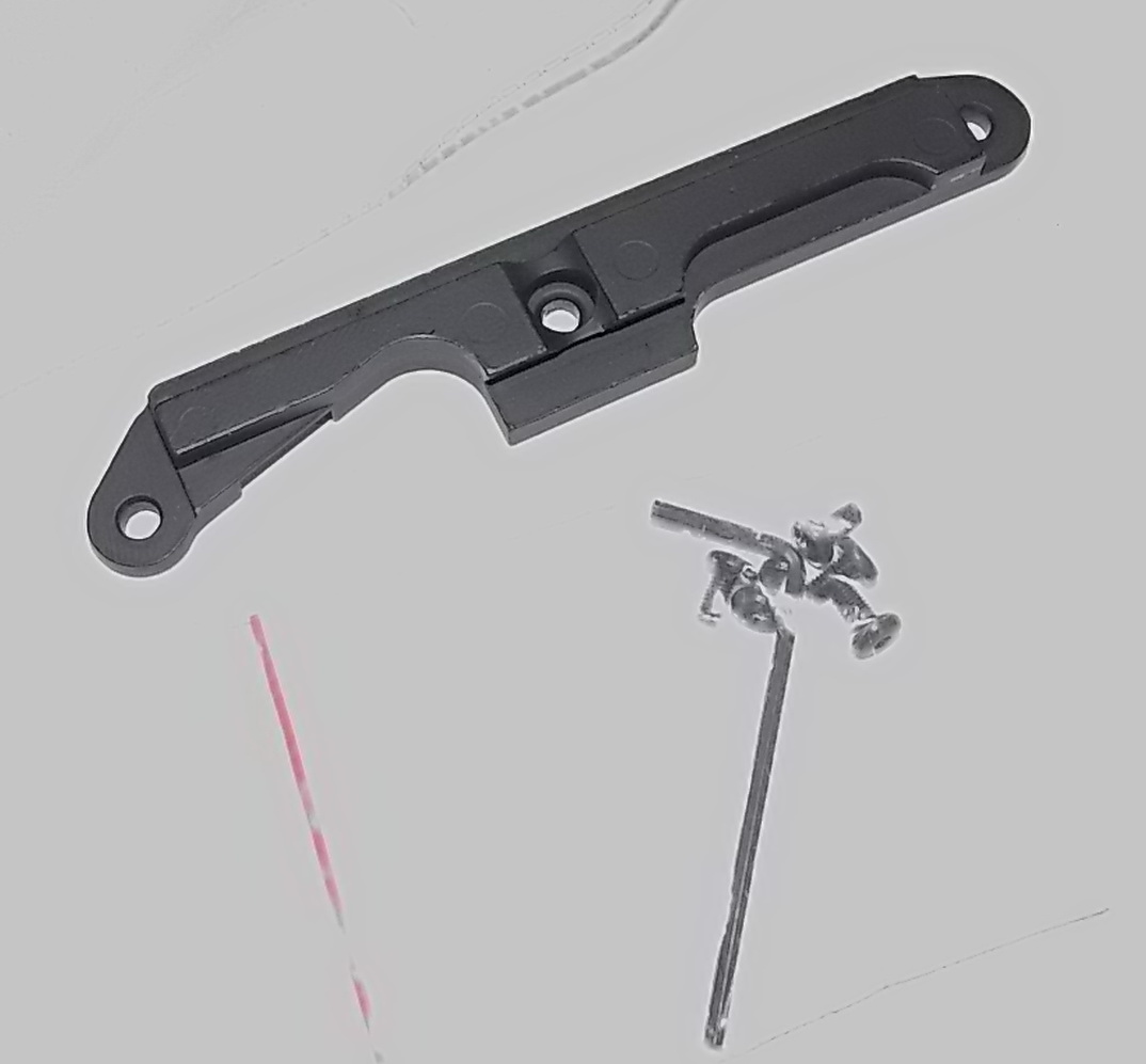 В комплекте планка металлическая,к ней родные винты(есть и запасные) и ключик шестигранный.Новое всё из одного комплекта-фантик из пакетика только выбросил после распаковки.Ну уж очень хотелось потрогать.