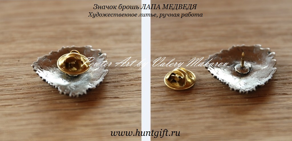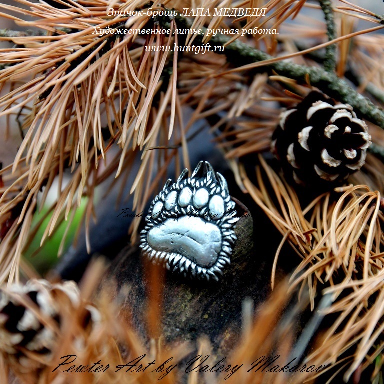 Металлические значки в виде миниатюрной копии передней лапы медведя.