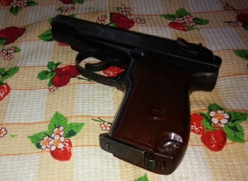 olad-78 писал(а):Из сделанного-отполирован,перебит номер на затворе и рамке,заворонен в селитре,шлифован УСМ,расточен клапан,установлена прокладка ствола,гладкий ствол,наварена гайка ствола,вклеен гнедок с выбрасывателем,установлена задвижка боевой пружины с винтом от боевого,переделана пятка магазина,установлен красный зип,наварены перегородки в рукоятке...