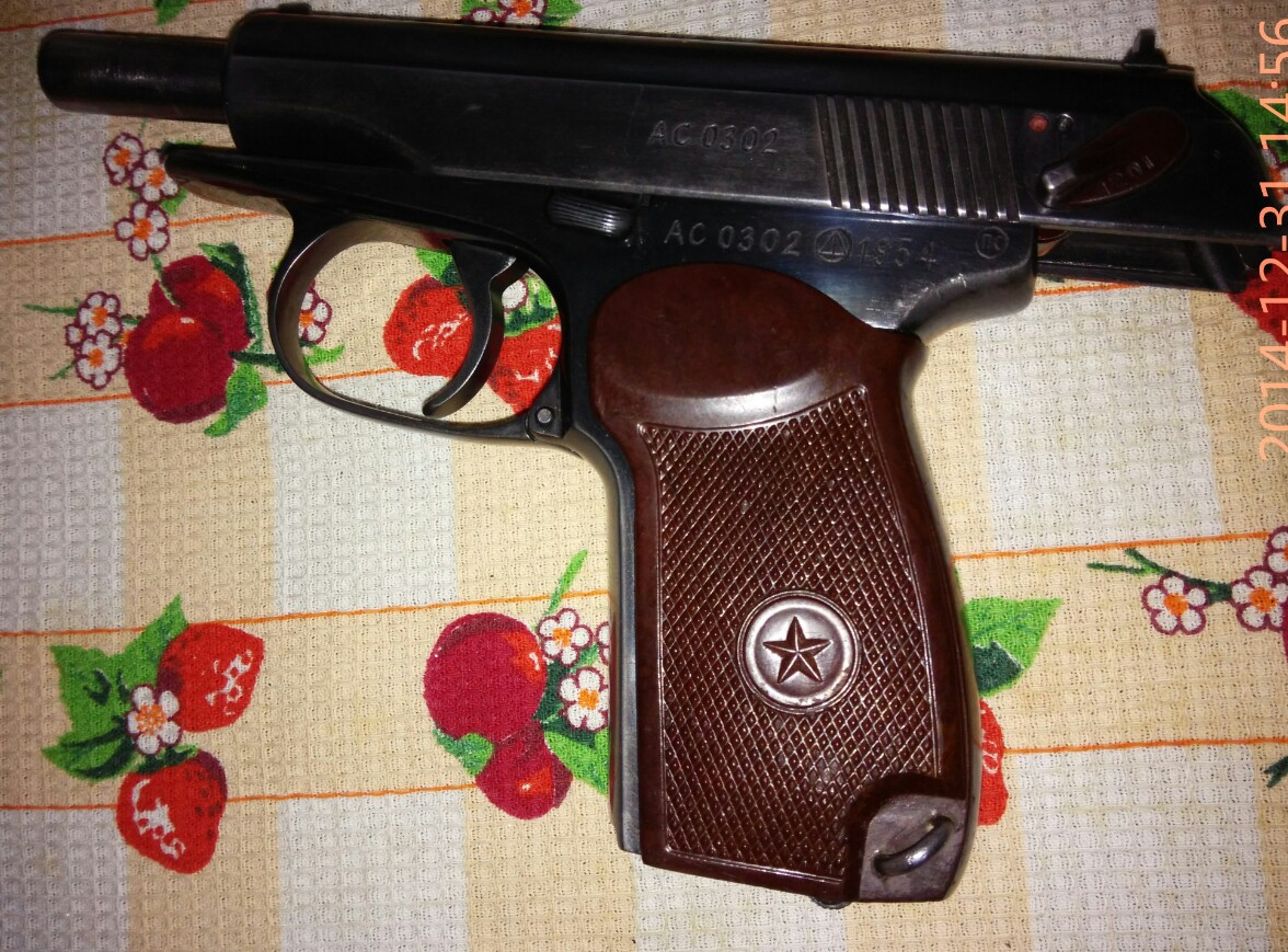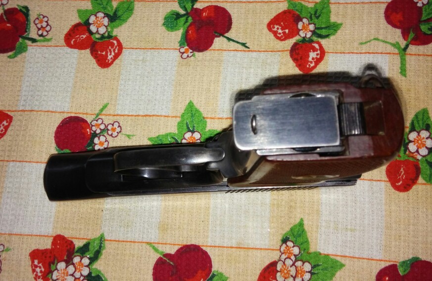 olad-78 писал(а):Из сделанного-отполирован,перебит номер на затворе и рамке,заворонен в селитре,шлифован УСМ,расточен клапан,установлена прокладка ствола,гладкий ствол,наварена гайка ствола,вклеен гнедок с выбрасывателем,установлена задвижка боевой пружины с винтом от боевого,переделана пятка магазина,установлен красный зип,наварены перегородки в рукоятке...
