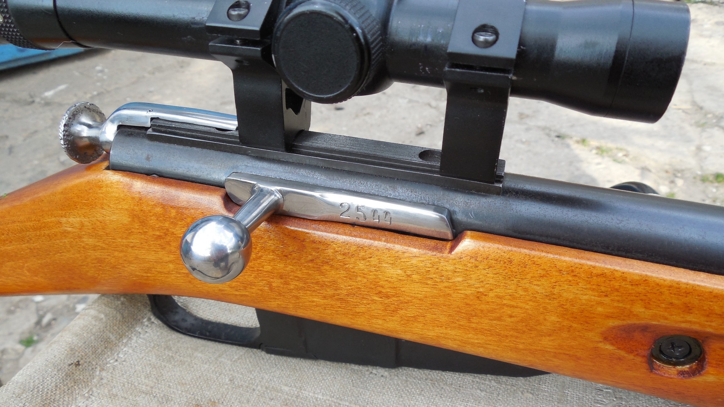 Затыльник, ложевые кольца, стопоры колец, шомпол, ложевые глазки, наконечники цевья, база мушки, крышка и защелка магазина и пр. – вручную из металла, воронились в домашних условиях;