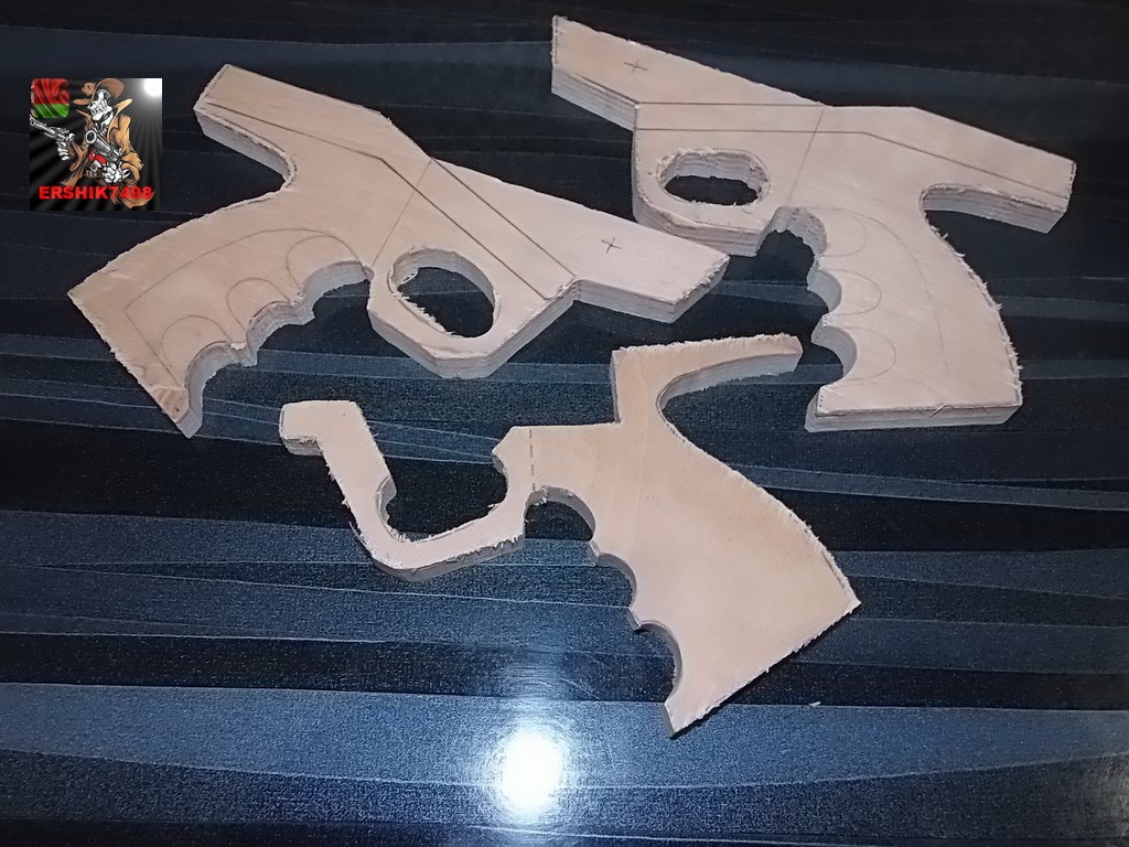Понял тебя,Сергей!Прочитал оба поста...Ссылки сейчас просмотрю,люблю глянуть на всякого рода самодеятельность!Что касается чёпика-дело в том что планировал же прокладочку между ним и рукоятью,отказался-закрасил прокладку,а во вторых-за счёт чёпика с прокладкой увеличивал длину рукояти,потому и выпиливал заготовки с расчётом на добавку этих элементов.К полной эргономике здесь не стремился-делал удобную под обе руки,как просил Димка...