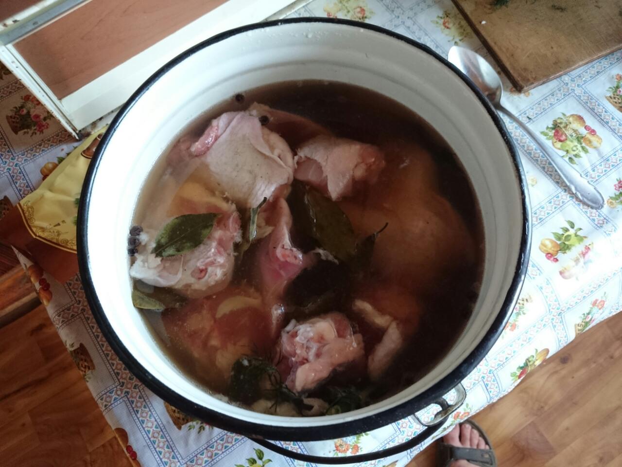 Сегодня замочил курицу в рассоле, завтра буду коптить.