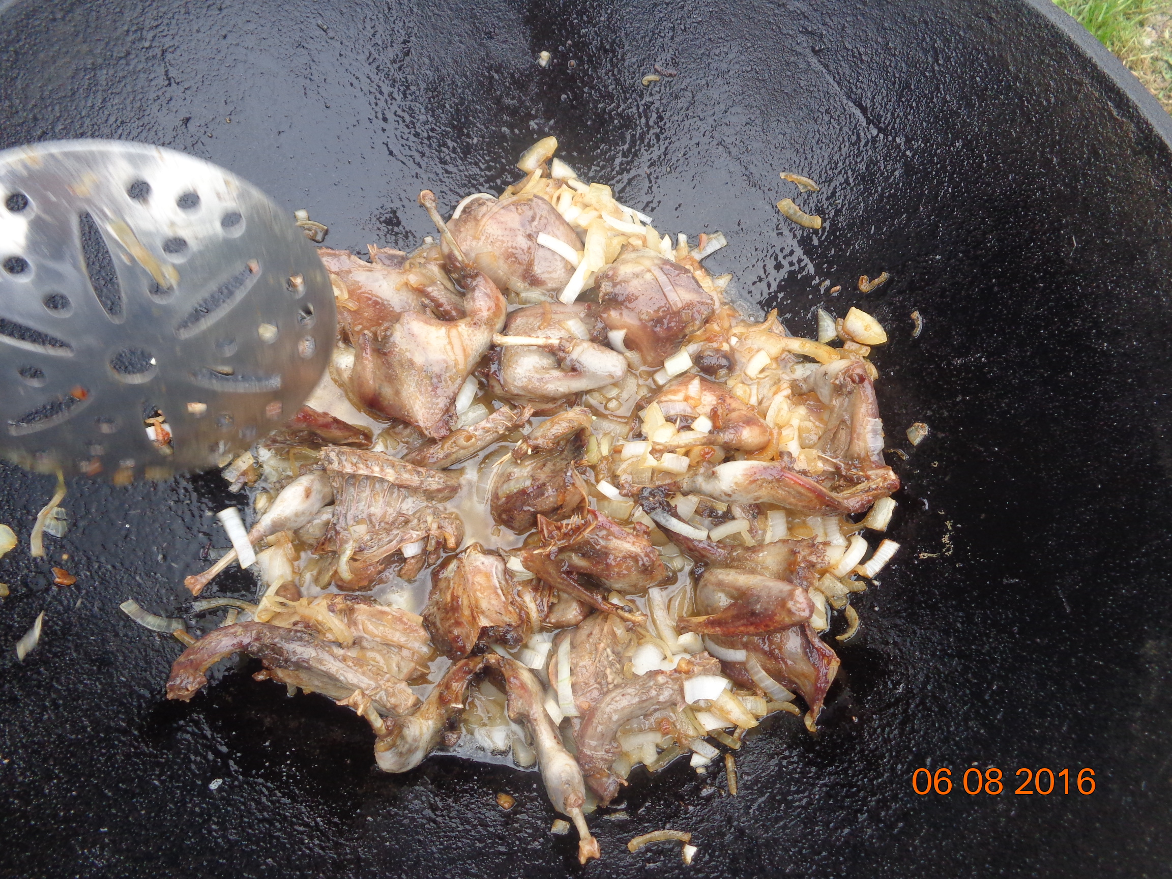 ...добавляем немного водички из колодца, солим,перчим,накрываем казан крышкой и даем ещё время потомиться,тут уж у кого насколько хватит выдержки,скажу честно,у нас на много не хватило...
