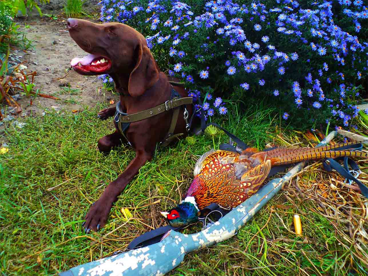 ...в среду с собом решили пройтись после обеда по проторенным старым стежкам... ну и заглянули на старо-знакомый ставочек, даже без всякой надежды че-нить стрельнуть - ибо с утреца, ТАМ, народ местный уже трошки "по бродил" - следов та стрелянного полимера стреди травы было!!! ...но соб свои нагулянные тропы знал и шастал по привычке меж очеретов...после круга нарезанного вкруг става, с досадой в душе, соб пошел по ветру в степь, до маслин, ну и я за ним следком рысью...порыв ветра остановил Аргошку метров за 50 от меня, он вытянулся весь, напрягся, его трусит, но ждет... в раскарячку беру патрон меж пальцов, в пратронник 4-ку, на тихом бреющем с под "хвоста" у собы захожу, ... тихонько стучу его по ляжке - и тот срывается с места влетает в жмут сухой травы коло маслины и оттель подымает фазана.... взлетает тяжко, от меня по курсу, даю ему метров 15-20 и нажимаю слегонца на курок...летун переворачивается, клонит голову на бок и падает в траву... Арго в секунды подбирает его и тут же на месте отпевает ...довольные с собом и с торбой дуем до машинки через старые заброшенные дачи...по ходу на базу, заехали глянуть просто для обозначенности на ставки, меж карьерами,... подходили на коротком поводке со сторны низины с камышом к горке ...и при подъеме по ней , через ребро склона, увидел став.... и сразу заприметил движ - метров до 25-30 было и утки голов до десяти,.. присел, думать было некогда, поводок зацепил на какусь ветку, на соба чуток нашикал, бо он зачуял енто всё дело, опять патрон меж пальцов другой в ствол и пополз по склону до верху, та от проблемчик вылез - как раз за спиной - там был меж очеретов другой ставочек, с плесом, и оттель качва меня и заприметила - спереляку рвонула до верху кто куда , пока я головой крутил, с обох боков на крыло поднял до двух десятков...соб видать как и я был в полном ауте,....но по двум пальнул , та ось все в мимолёт...утки с крыжнями и крыжачками, здоровые, перелетные,....пооблизывались мы с собом , поглядели друг на друга, поплевали с досады, поставили метки под деревом и побрели до машинки - а дома уже и отдохнули и душа и ноги, и соб по тихому засопел на лежике от усталости....